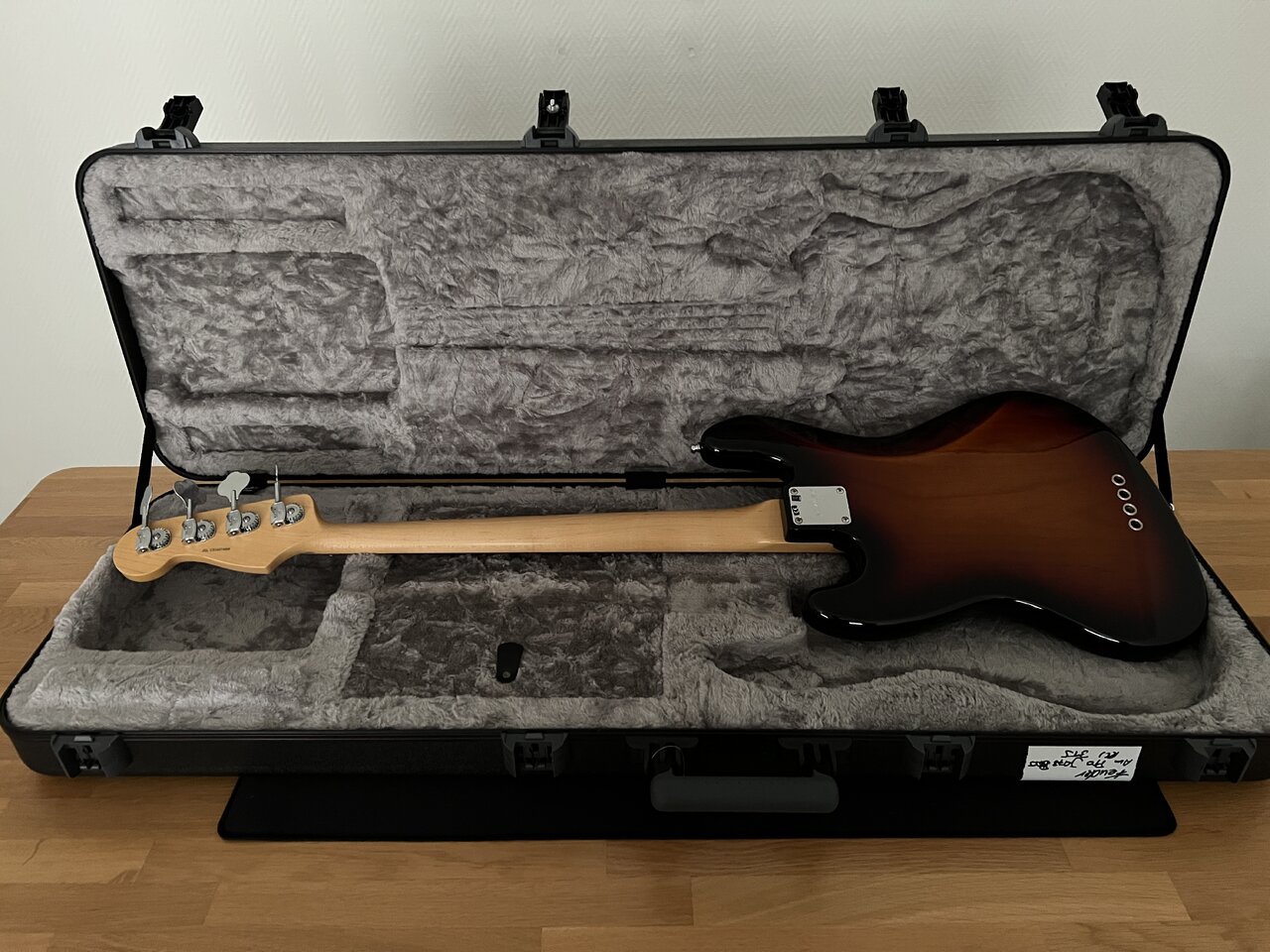 Fender Koffer und Anleitung, Imbus, Fender Microfasertuch etc sind alles dabei. Saiten (Ernie Ball 45-105) sind gerade erst frisch aufgezogen worden. Einen Satz Saiten gebe ich noch dazu.