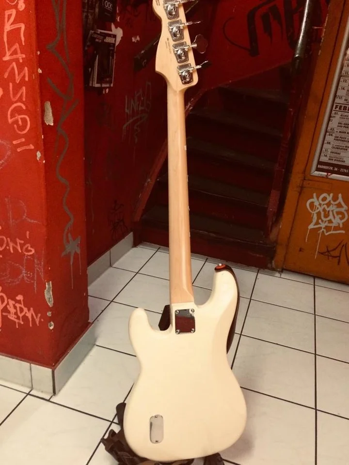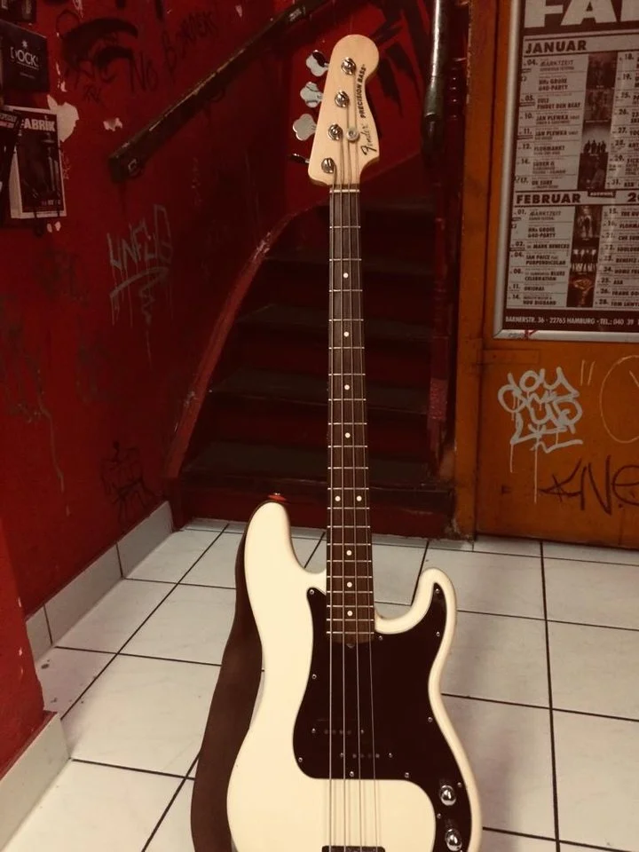 gespielt. eine touren und ein album damit eingespielt. seit ich einen fender 51er preci spiele und auch gelegentlich wieder einen jazz bass, steht er nur noch ungenutzt herum. absolut zu schade dafür. ich habe ihn mit einer noll-drei-band-elektronik ausstatten lassen. die ist auch passiv schaltbar. ich liefere zudem die original fender-verkabelung mit, falls jemand rückbauen möchte. klingt gut, sieht super aus und ist einwandfrei in schuss, meiner meinung nach auch die bünde.