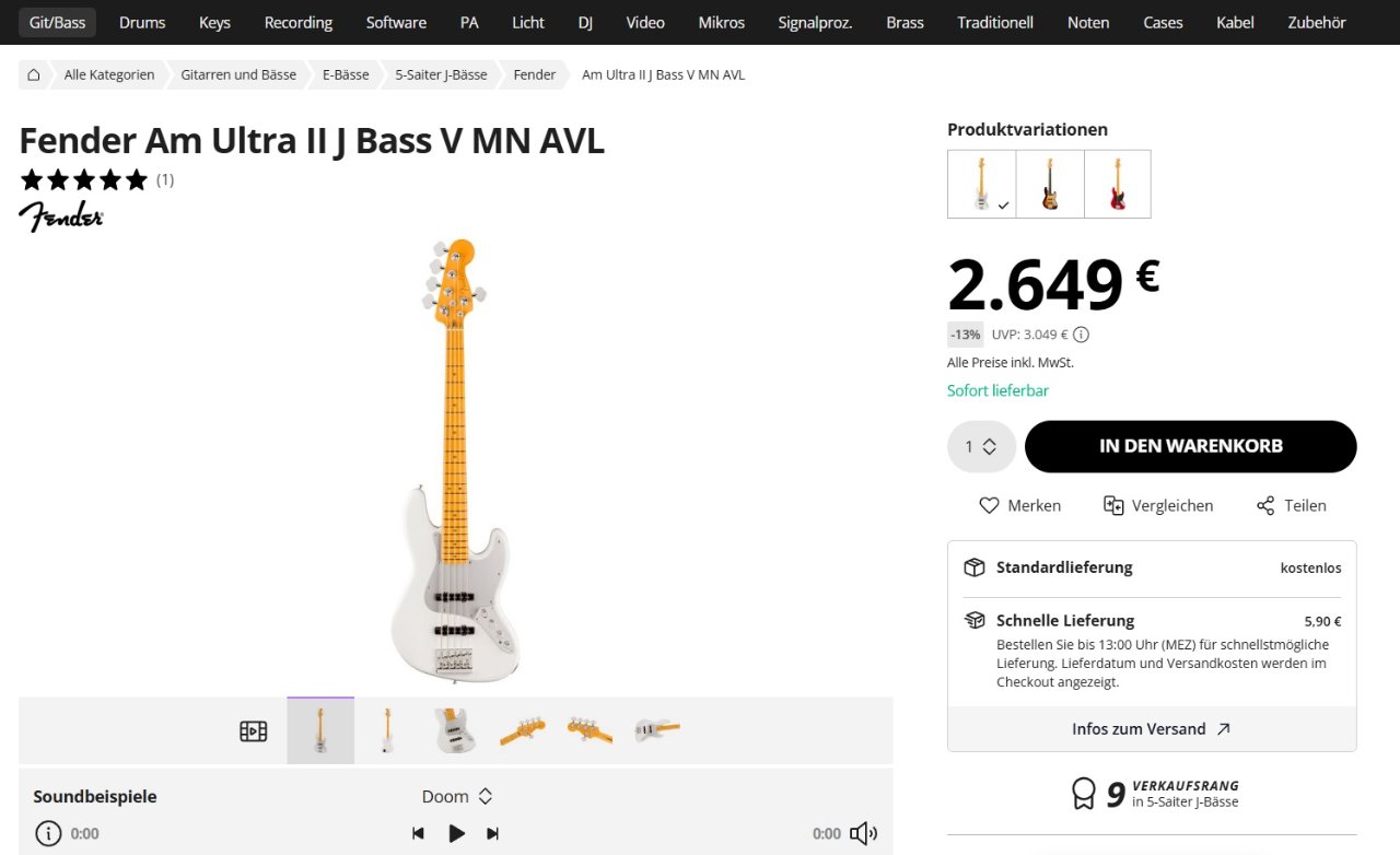 Fender American Ultra II Jazz Bass V MN Avalanche · Sonntag, 23. Nov. 📸