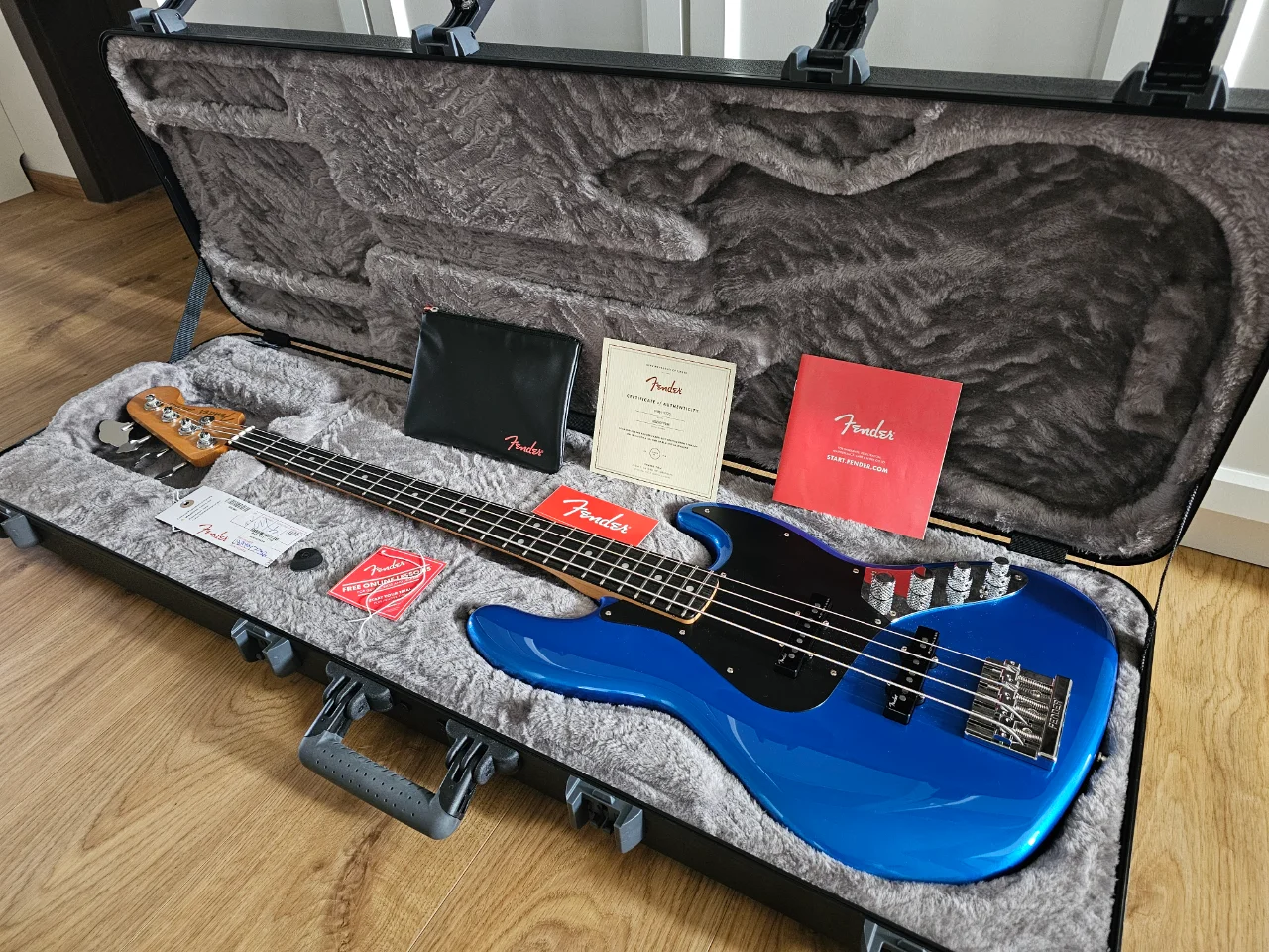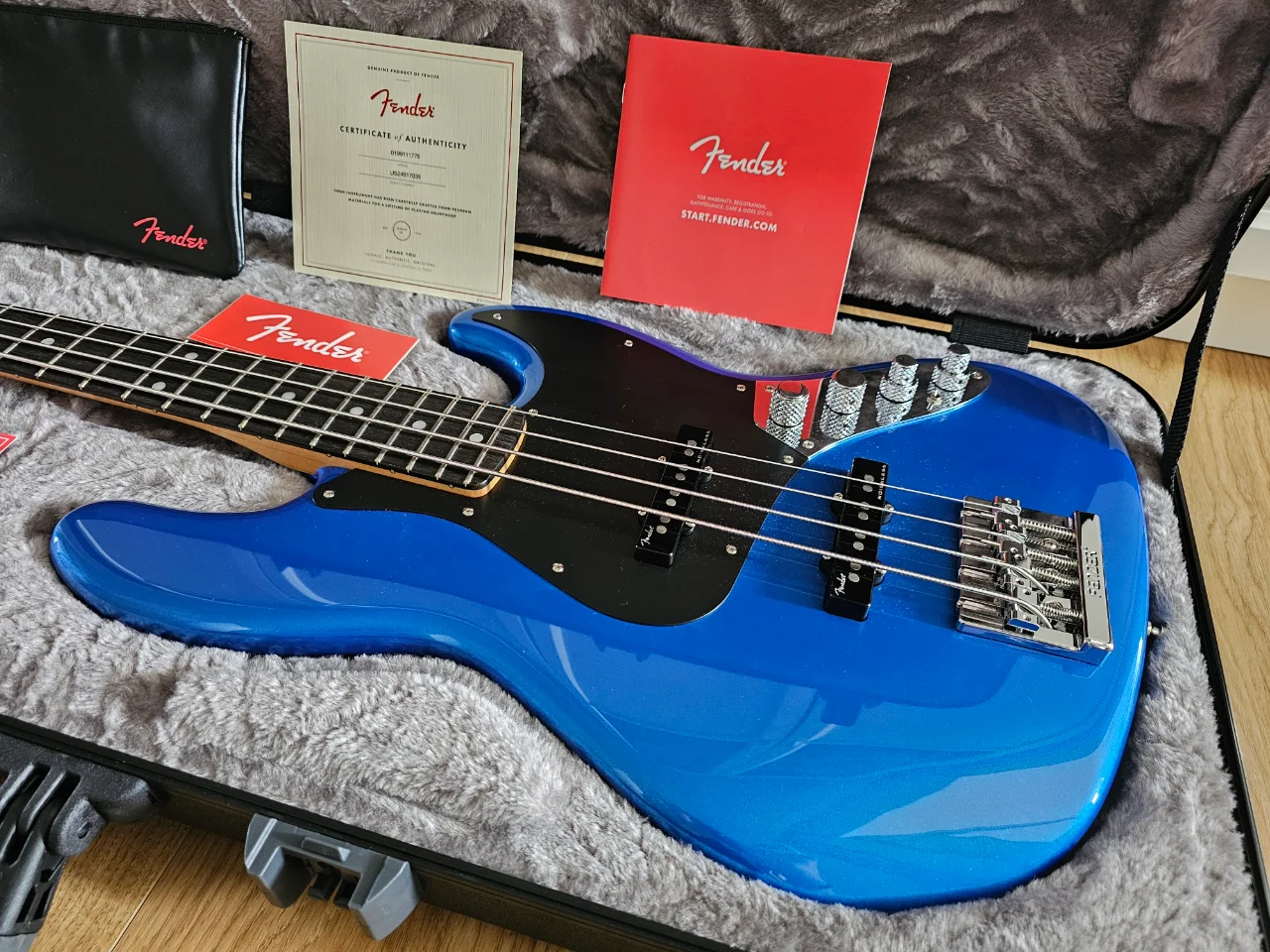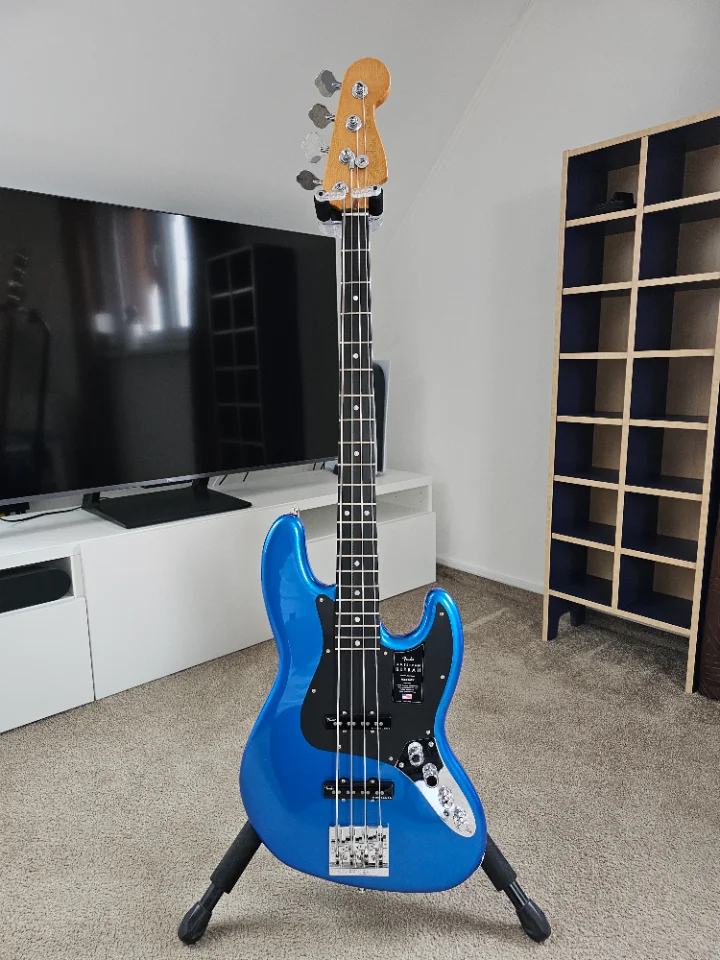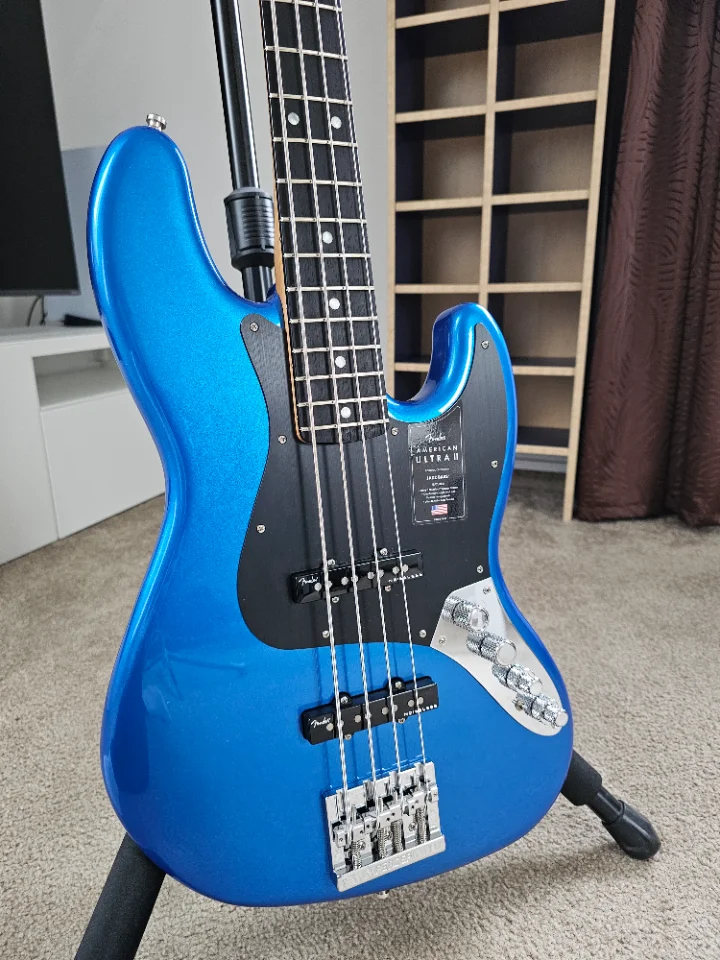 up for sale is my 4 months old Fender American Ultra II Jazz Bass in Noble Blue color. Bass is brand new, lightly played. There are no marks of using. This is very good piece. Can be adjusted very low action (something around 1,25 mm on G at last fret without buzz. Case and all case candy included, like new from a shop.
