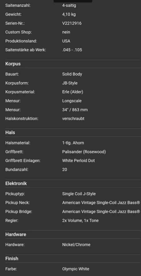 Ich biete hier einen Fender Jazz Bass aus der Vintage II Serie an.
