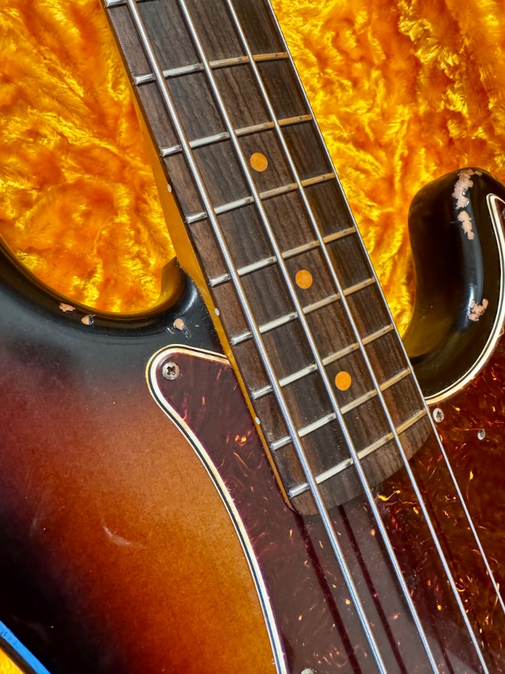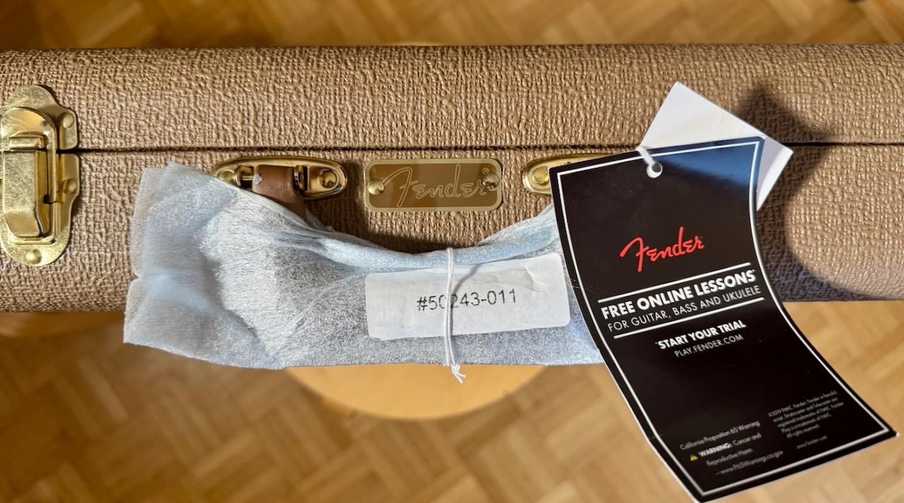 Bei der Gelegenheit wurden auch die oberen, seitlichen Fretmarker am Hals mit Luminlays gemacht und das Griffbrett auch noch mal abgerichtet. Alles andere, das sehr gute PU, die Brücke usw…. sind original.