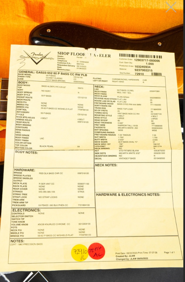 Ich biete hier meinen Fender Custom Shop 1960 Precision Bass (Baujahr 2023) im Closet Classic Relic Finish in der Farbe Black Pearl zum Verkauf an.
