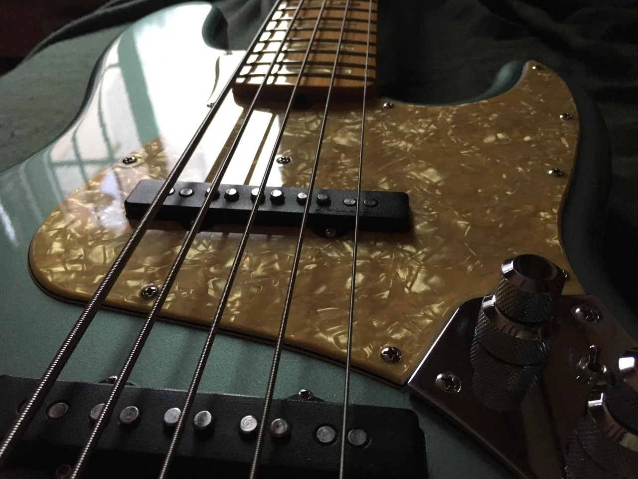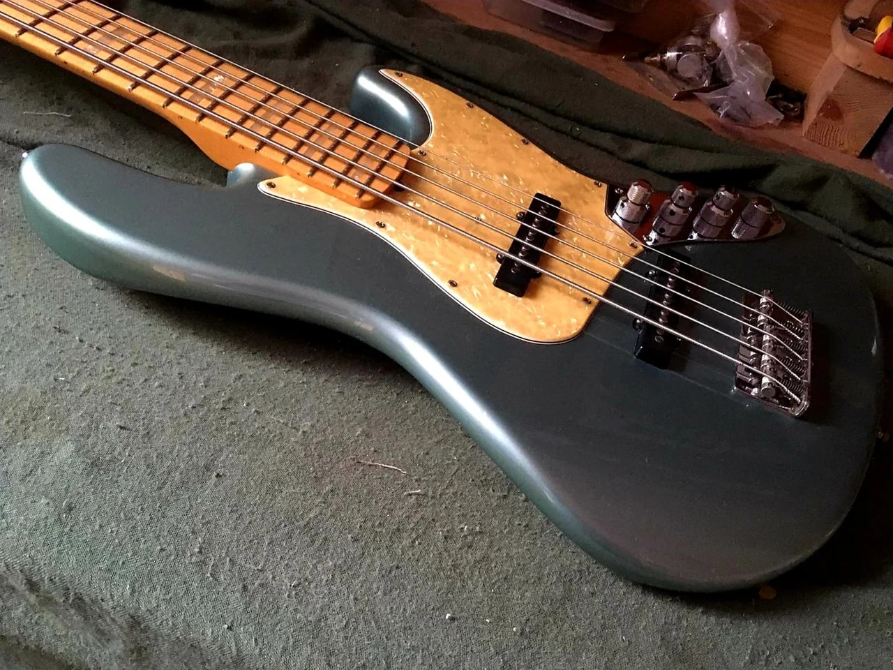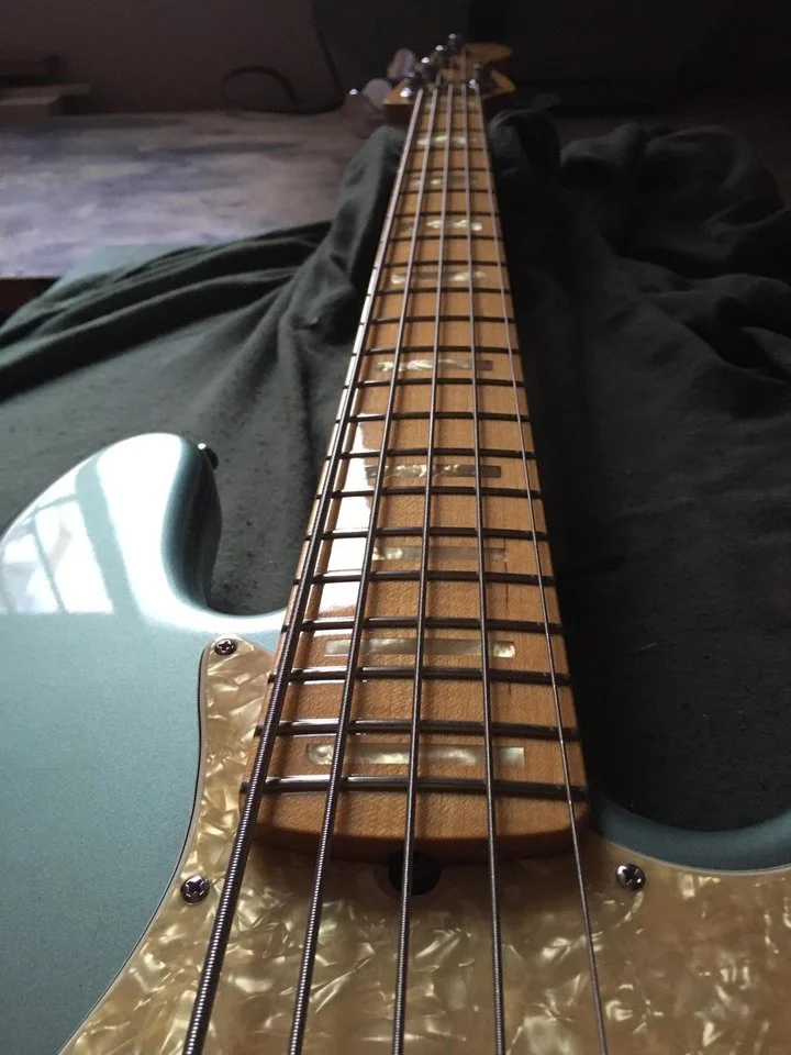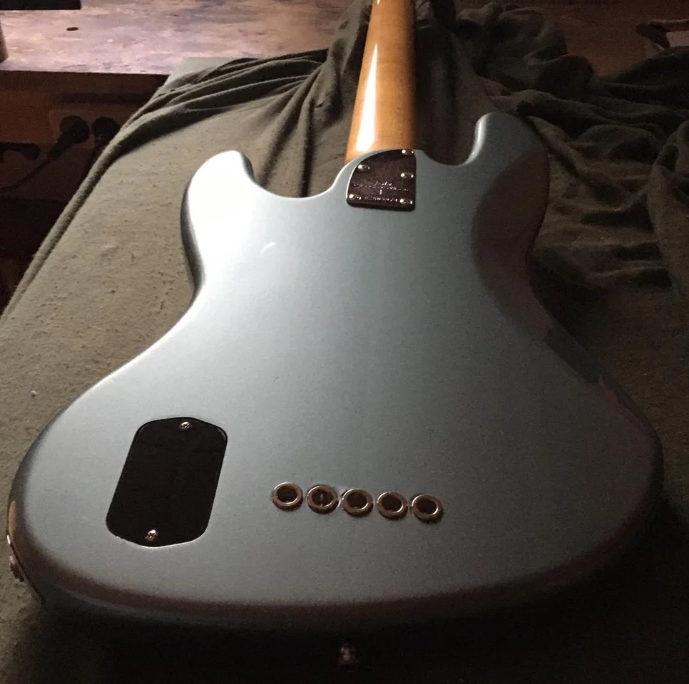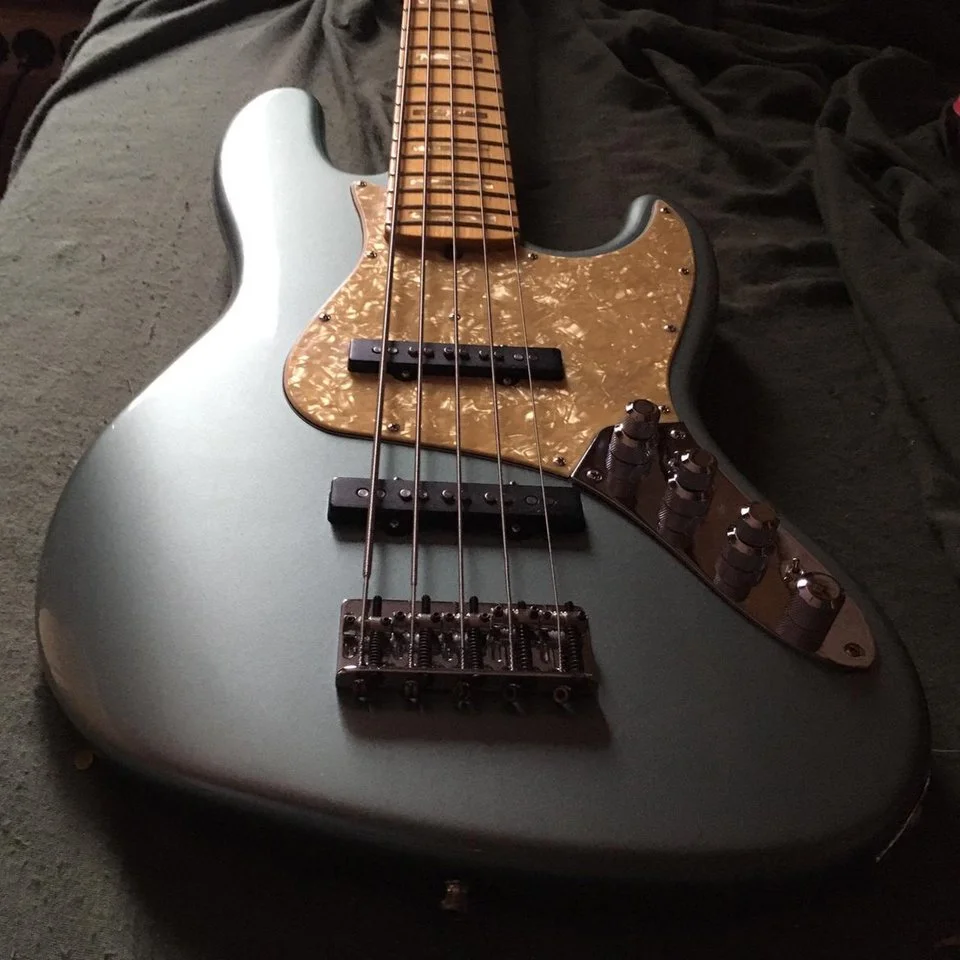 For sale Fender Custom Shop Classic 5 String Jazz Bass in a beautiful Ice Blue Metallic,