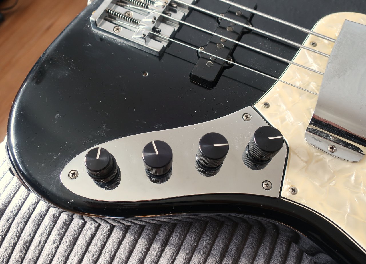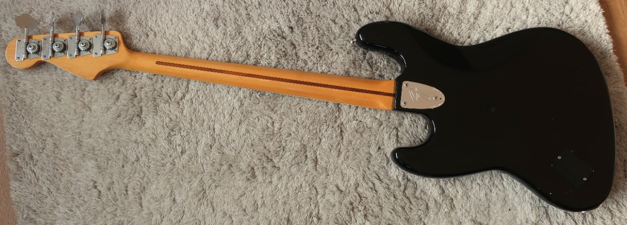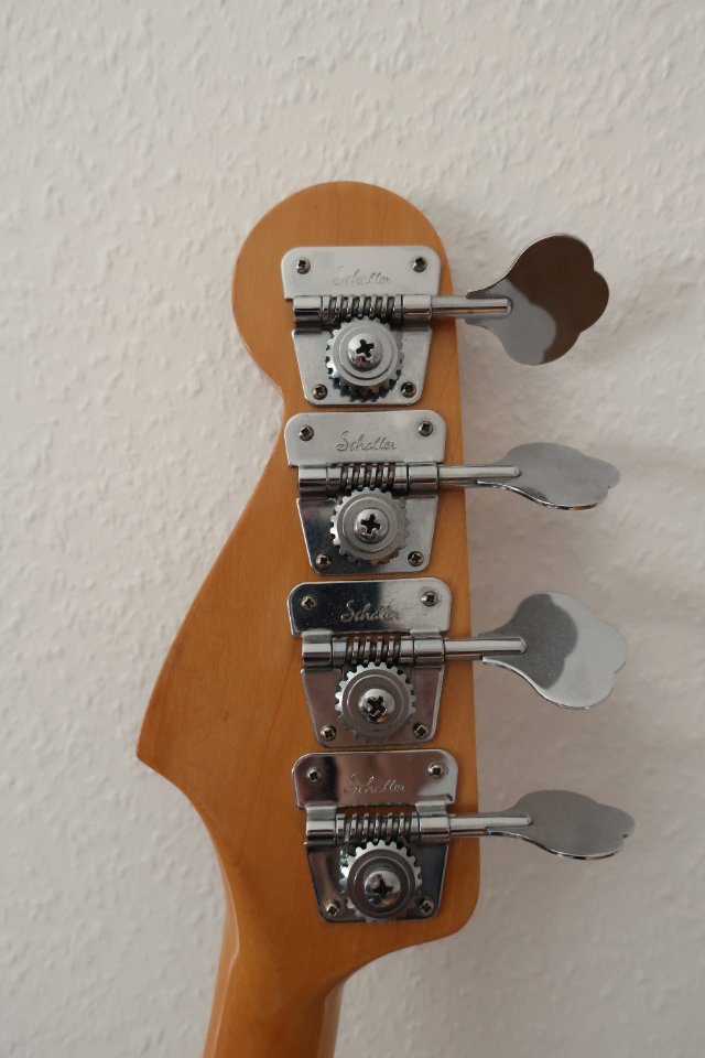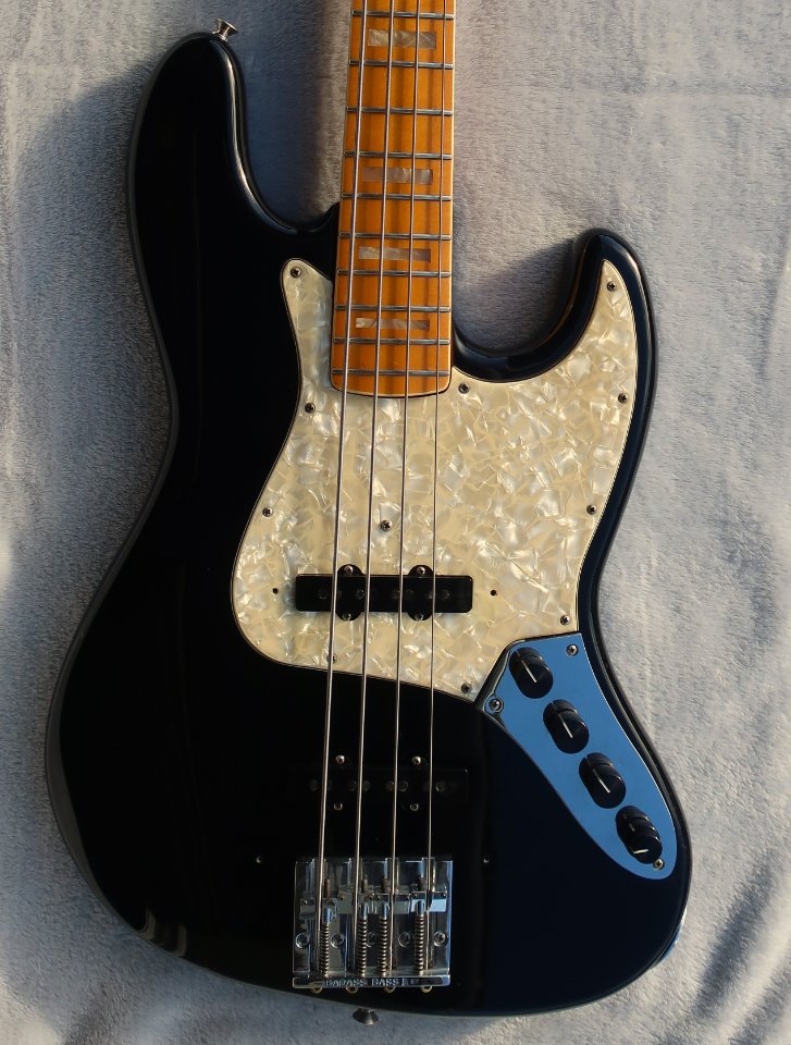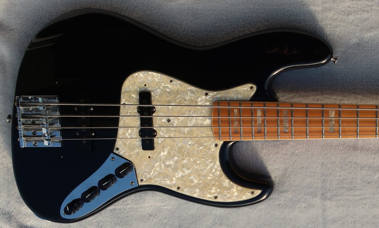 schwarz (professionell refinished bei der Firma Clover Bass Guitars), Gewicht 4,7 kg, Kloppmann Jazz Bass 71 Pickups verbaut,