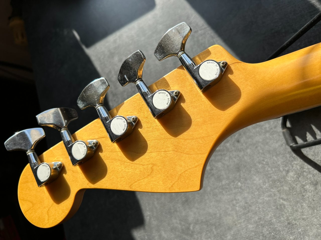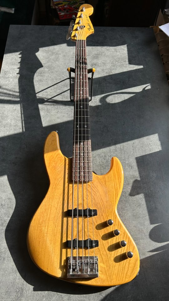Ich verkaufe einen Bass – einen 1987er Fender Jazz Bass JBV-95R aus der berühmten japanischen Fabrik in Fujigen. G-Serie. Zu dieser Zeit waren die Japaner in Bezug auf 5-saitige Designs mutiger als die Amerikaner, und dieses Modell ist der erste serienmäßig hergestellte Fender JB mit einer B-Saite. Obwohl „serienmäßig hergestellt” übertrieben ist – es gab nur wenige dieser Bässe, sie waren nur kurz auf dem Markt und kosteten ein Vermögen.