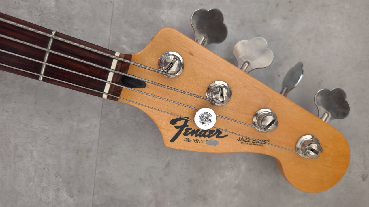 Zum Verkauf kommt ein gut eingestellter und gut klingender Mexiko Jazz Bass aus 1995 in der Farbe Torino-Red.