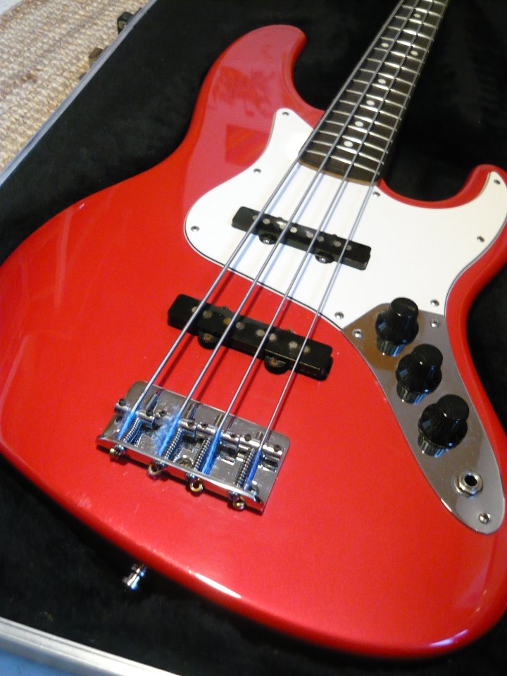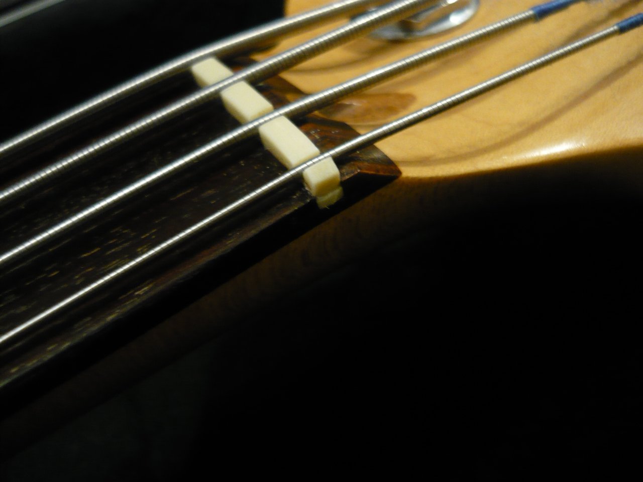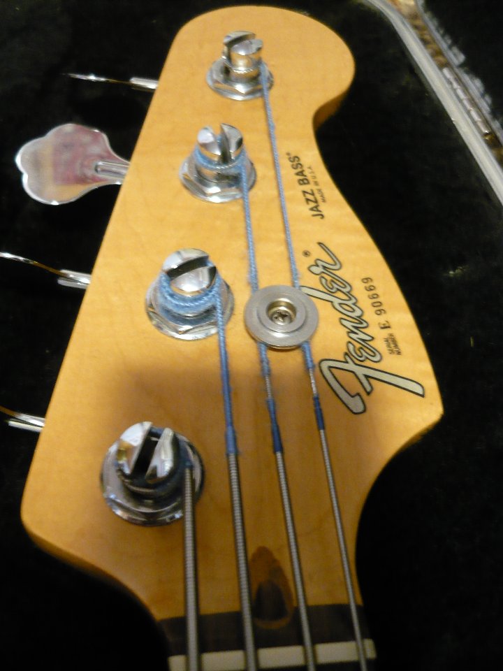 Saiten sind Ernie Ball Flatwound, 100er, wenn ich mich recht erinnere. Ich weisss: aufn JB gehörebn Rounds, aber ich mags nun mal so.
