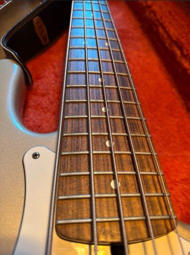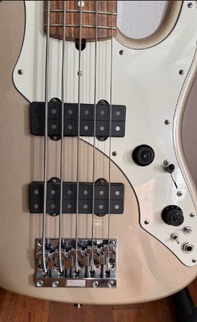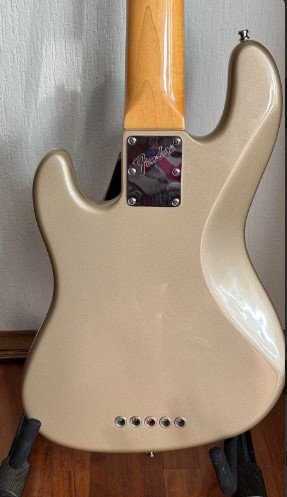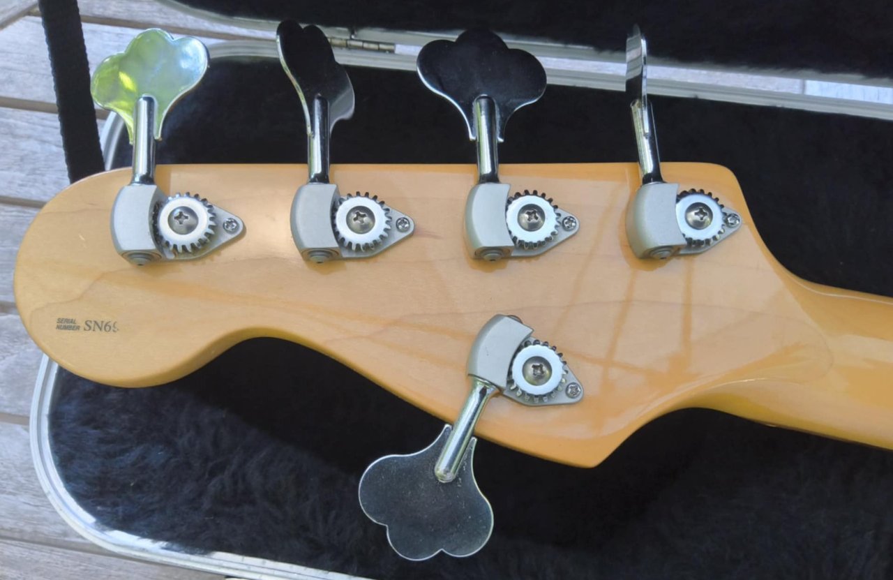 American Fender Jazz Bass, V-string - Roscoe Beck - made in 1996 - colour: shoreline gold - ca. 4,4 kg - 100 % original