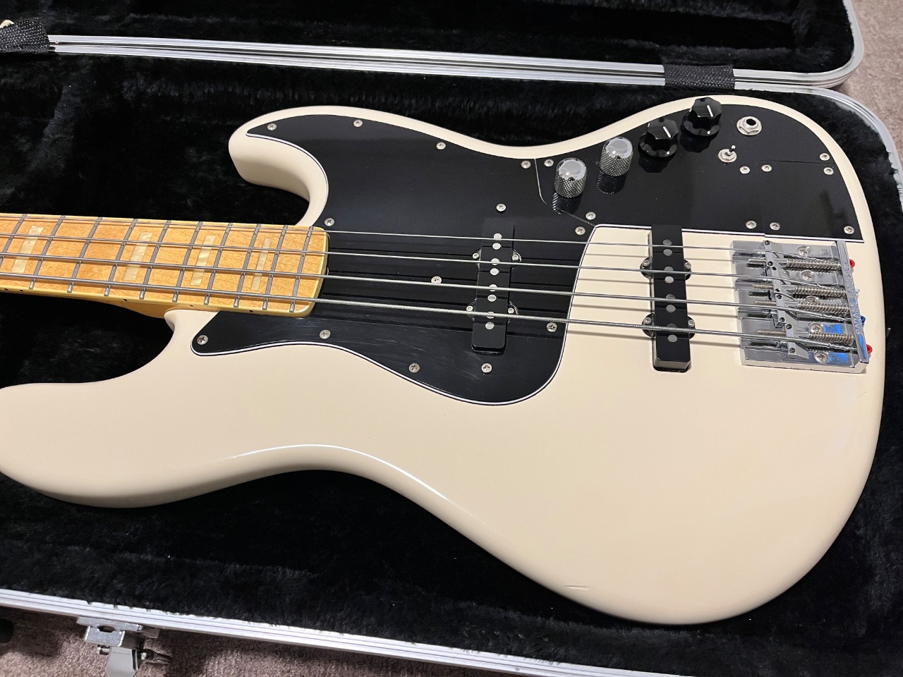 Top Zustand, kaum Gebrachaspuren, vielleicht ein oder zwei Mini Dings, komplett original mit neuen Saiten und Security Locks. Tiefe Saitenlage. Spielt sich fantastisch.
