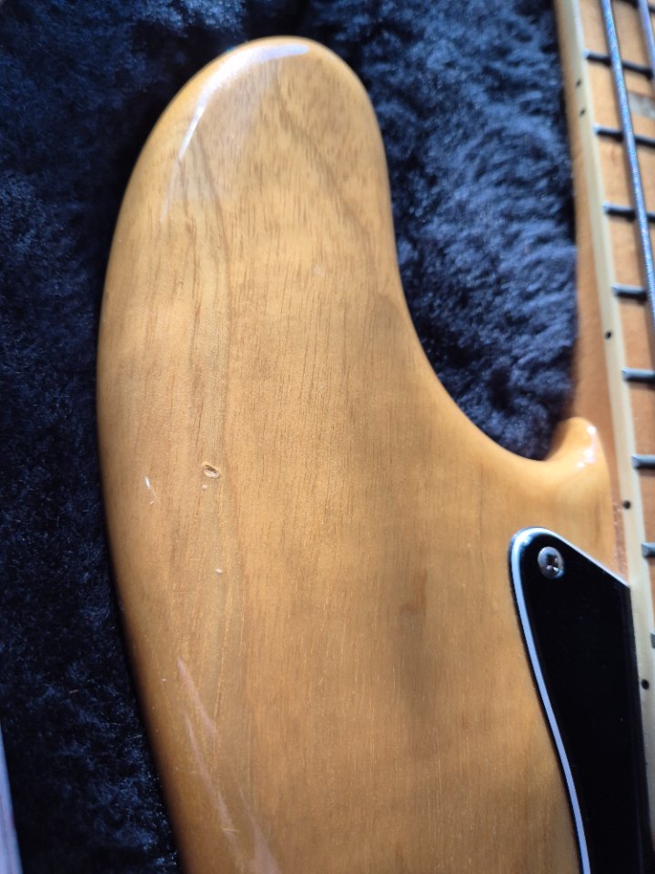 3kleine Dongs 1 am Hals 2 am Body, leichte Spuren auf der Rückseite. Hab versucht alles einzufangen. Dabei ist ein Fender Formkoffer.