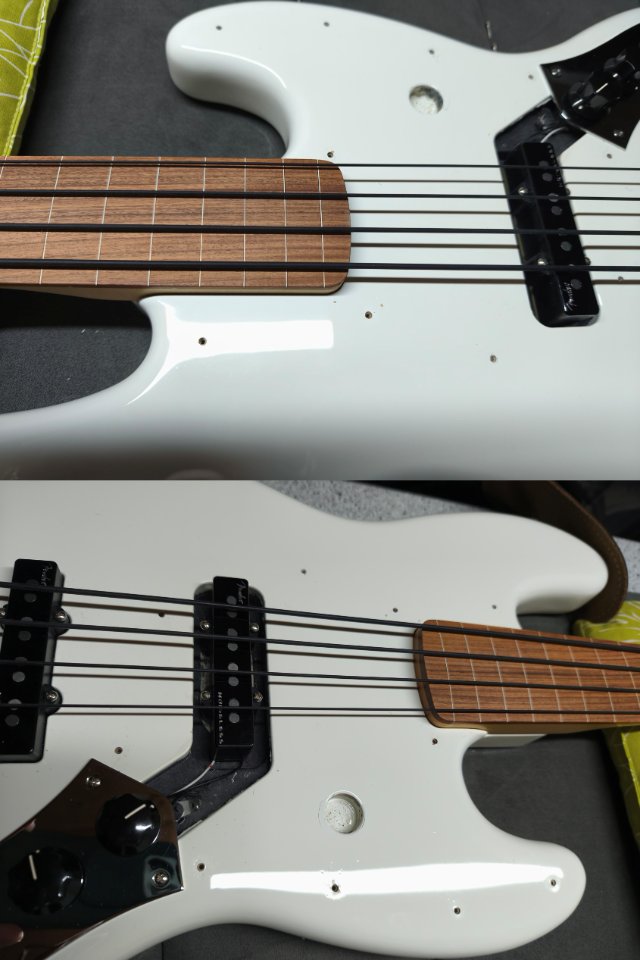 Es handelt sich um ein Demo-Modell mit Lackschaden (759,- €). Der Lackschaden ist rein optischer Natur, ohne Einfluss auf Bespielbarkeit und Stabilität. Es sind Fender Noiseless Gen4 Jazz Bass Tonabnehmer verbaut (149,- €); nicht die typischen Player Series Alnico 5 Single-Coil Jazz Bass. Die Klangausgewogenheit ist spitzenmäßig. Die E-Saite hat eine Hipshot BT7 D-Tuner Mechanik (84,- €). Der Bass wurde wenig gespielt. Keine Gebrauchsspuren. Serien-Nr. 2022…, Kaufdatum 08/2024. Ich bin Erstbesitzer.