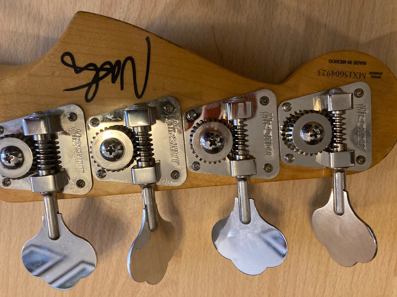 - Hipshot Tuner anstatt der Fender 70ies Style Tuner. Die Hipshot laufen etwas "sahniger" und sind auch etwas leichter. Dafür mussten -keine- Löcher gebohrt werden!