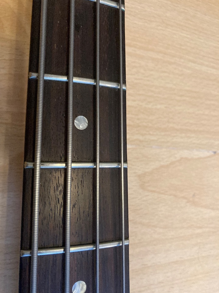 Alles an diesem Bass funktioniert einwandfrei, Bünde sind noch gut in Schuss und es sind an Body&Hals keine nennenswerten Macken zum original "used" Finish hinzugekommen. Ich kann auf Wunsch natürlich nochmal auf die Suche gehen, falls die Bilder nicht genug hergeben. Es sind aktuell Fender ML Flatwounds aufgezogen. Die Original Teile sind nicht mehr vorhanden.