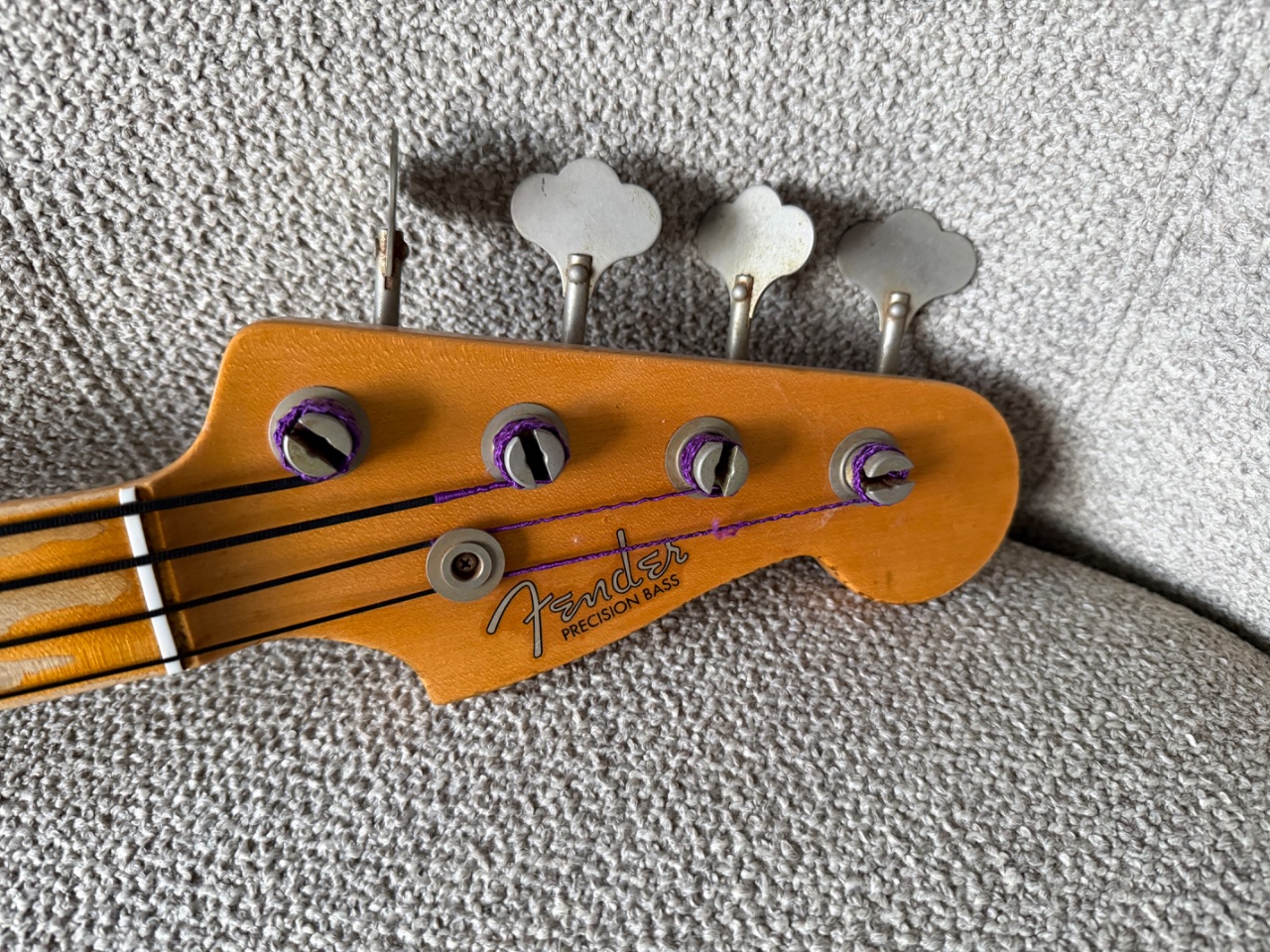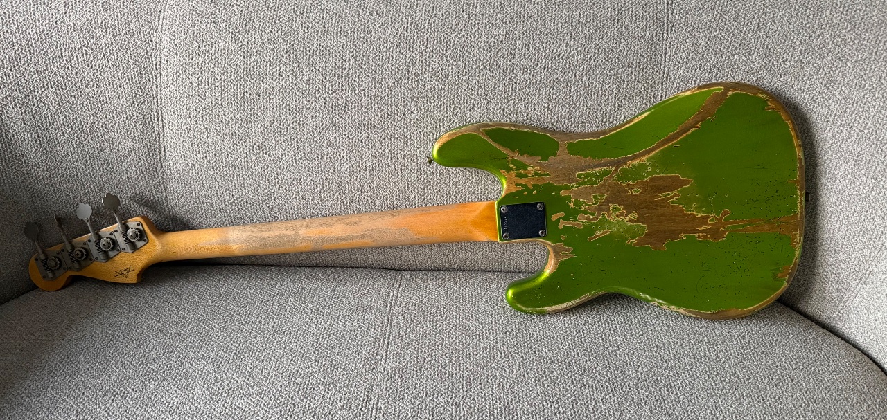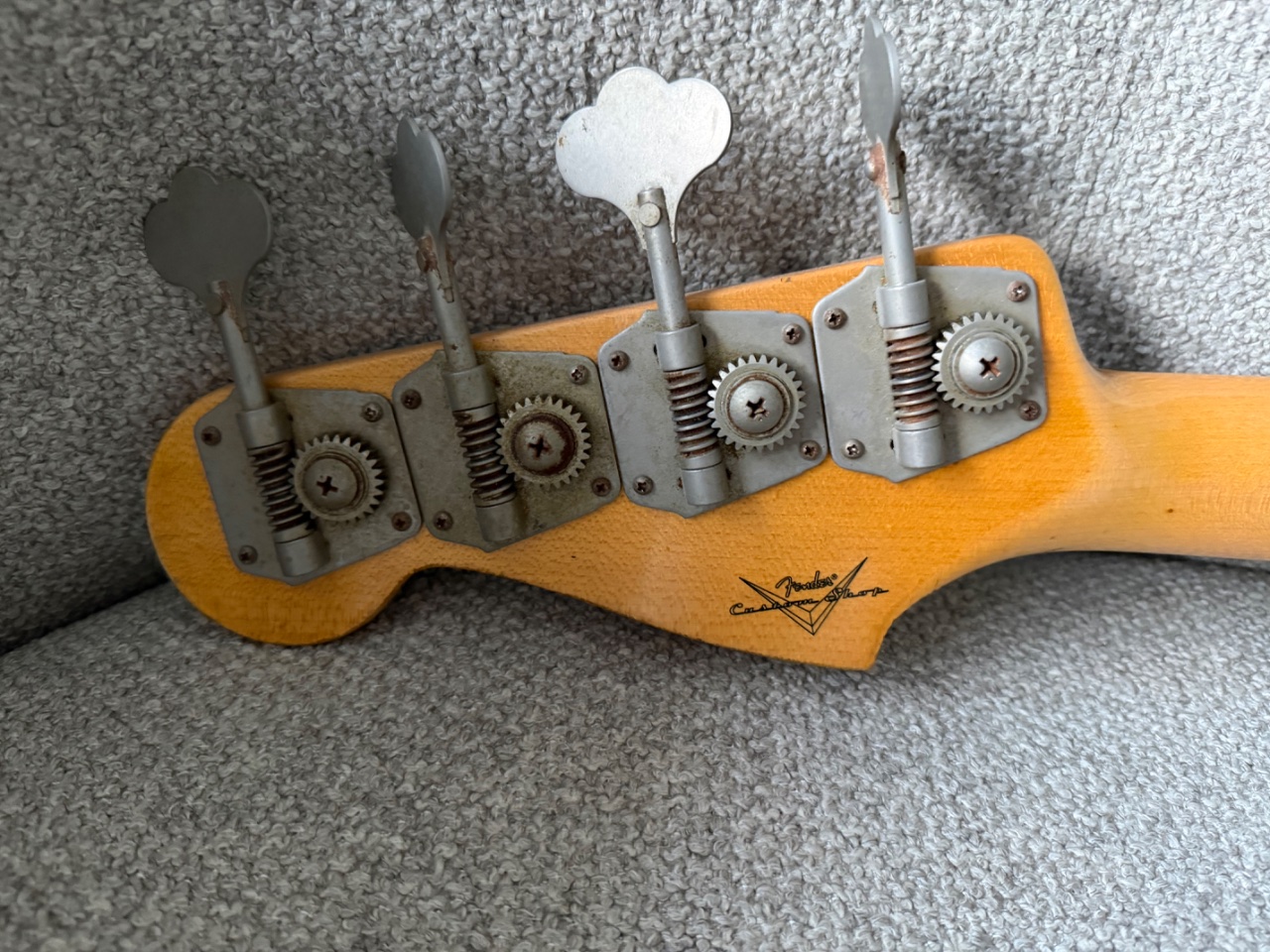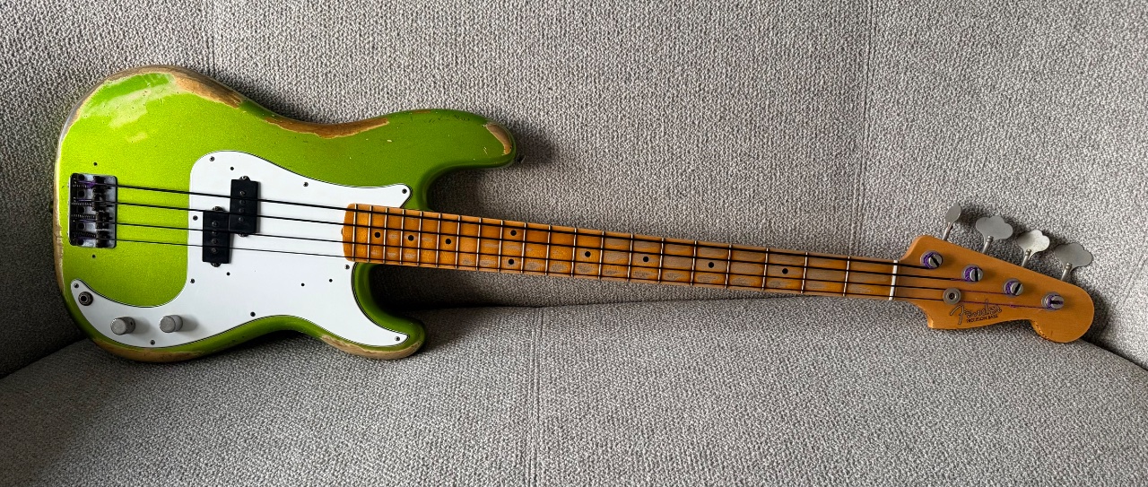 Zu verkaufen: Fender Precision Bass, Custom Shop Heavy Relic 1959, der Bass ist für einen P-Bass extrem leicht, nur 3,3 kg, derzeit mit Nylon-flats bespannt. Preisvorstellung: 3495,- €