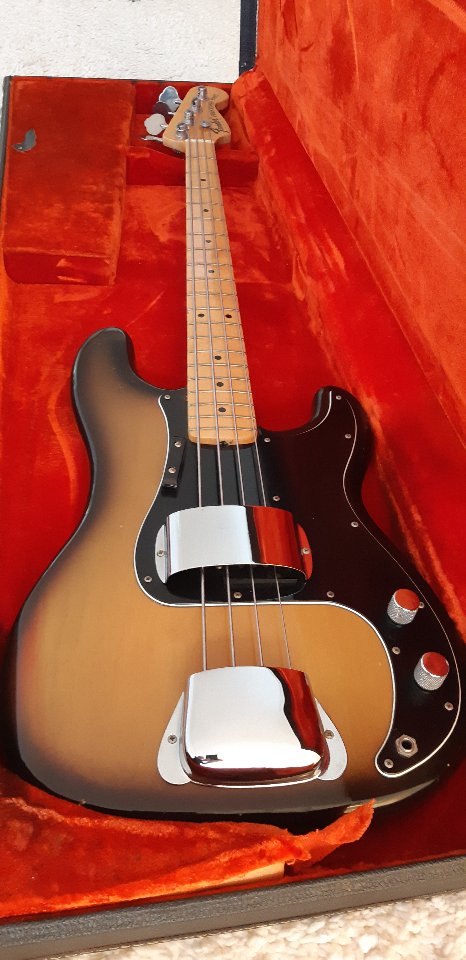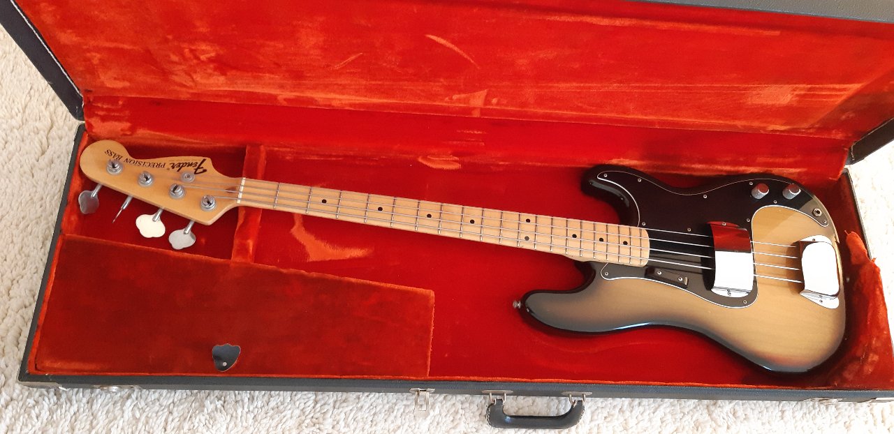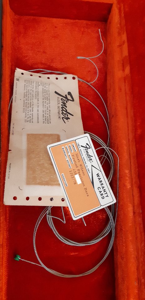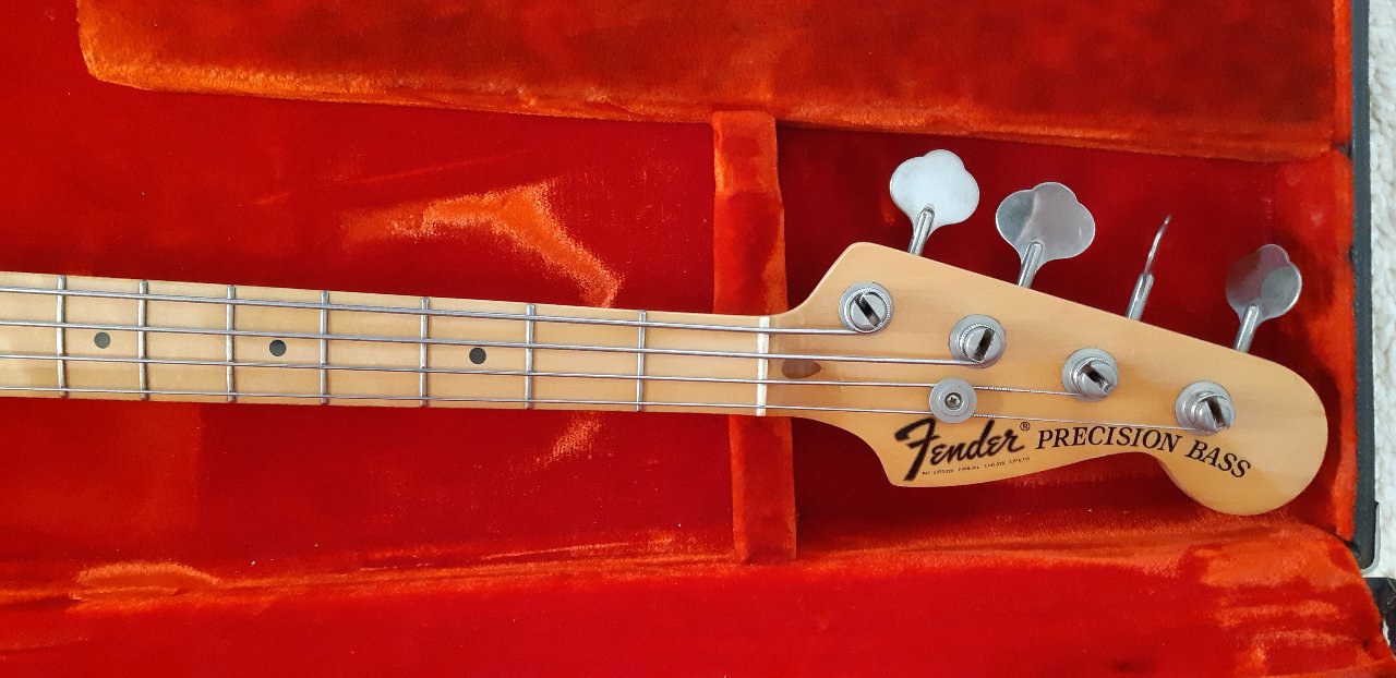 Fender Precision Bass, gemäss Seriennummer Jg. 1975, orig. Zustand, original case, Bünde quasi neu (flat wound strings), orig. Garantiebeleg (1976), Topzustand s. pics, antesten in Wettingen/ Baden CH möglich und erwünscht.