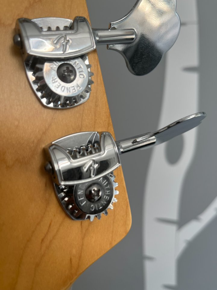 Der Hals ist mit Graphit verstärkt und verfügt über leichte Vintage-Mechaniken vom Typ „F“.