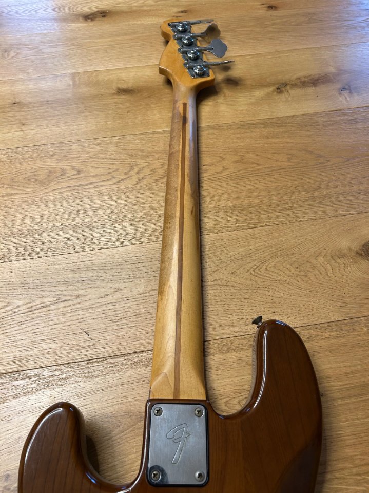 A Jazz pickup was installed in the bridge position with modified electronics and an output jack.