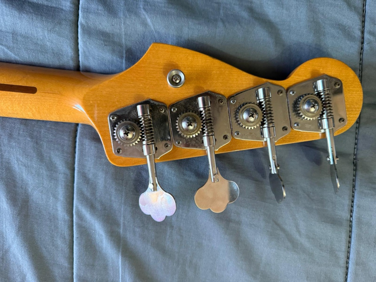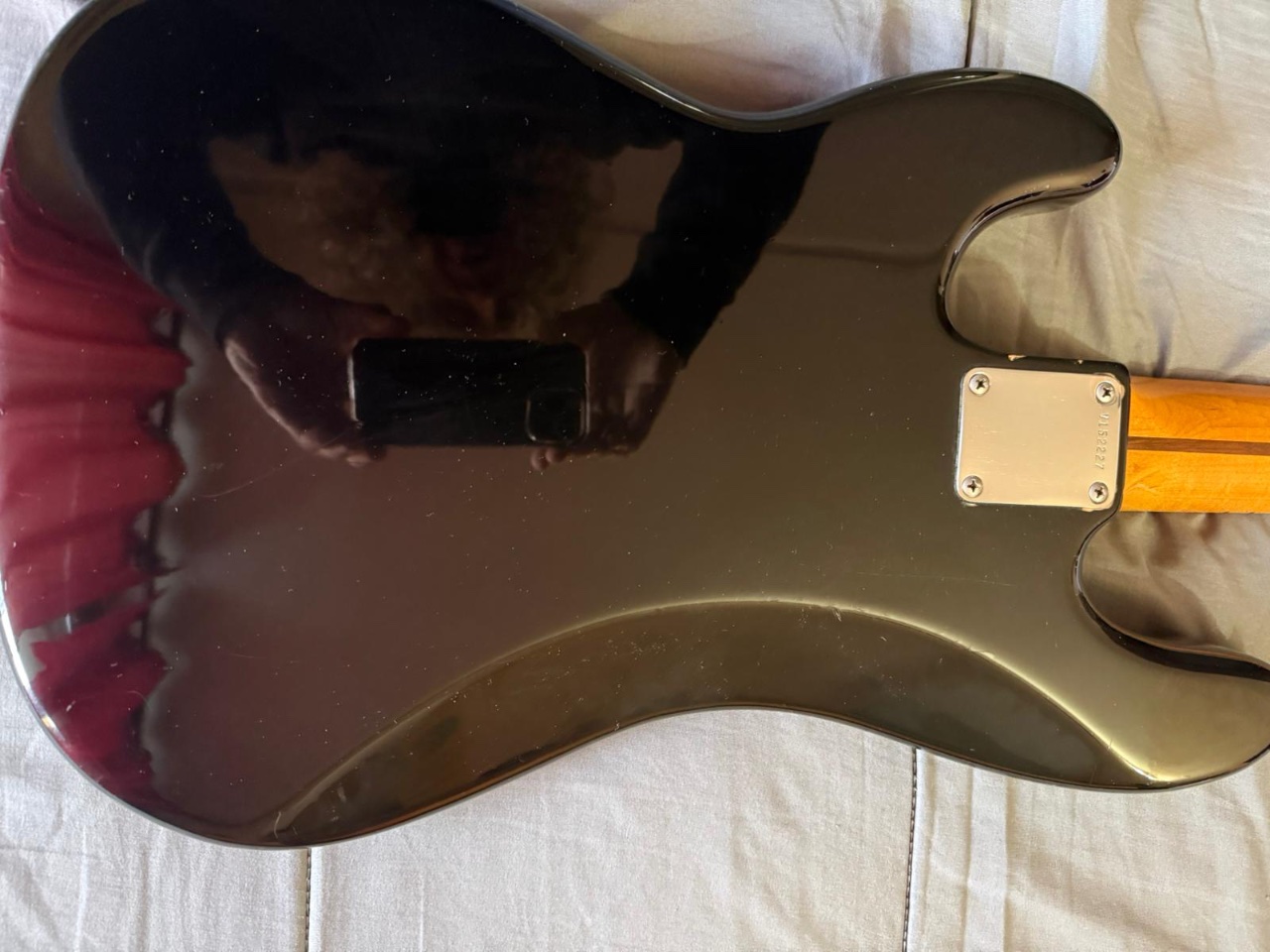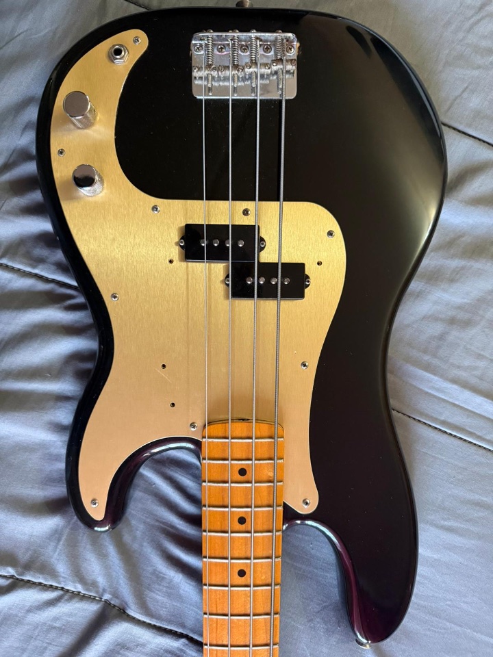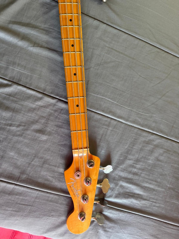 For sale a beautiful Precision American Vintage 57 in black, from 2005. 100% original. Everything works as it should. Great straight neck, A hair less than 4kg. Original tweed case and covers.