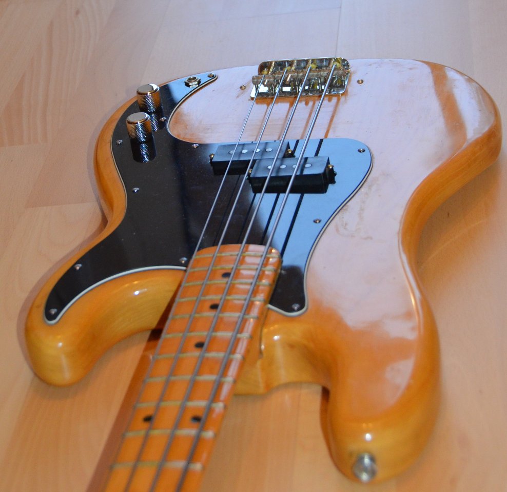 Möchte meinen 76er Precivon Fender verkaufen. Ein Charakerinstrument aufgrund deshervorragenden, geflammten Halses, mit dem man auch slappen kann,Halsweite 42mm, die Tuner drehen sich etwas unrund, trussrodfunktioniert, Saitenlage überm 12. Bund 2mm, Halsstock geshimmed.