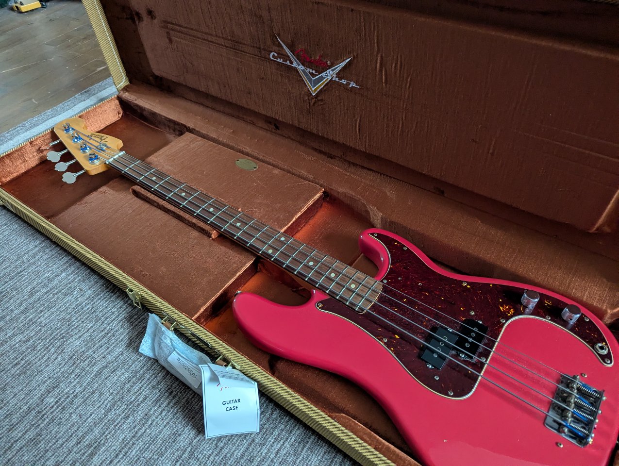 Und alle Papiere, plus ein Custom Shop Gurt.