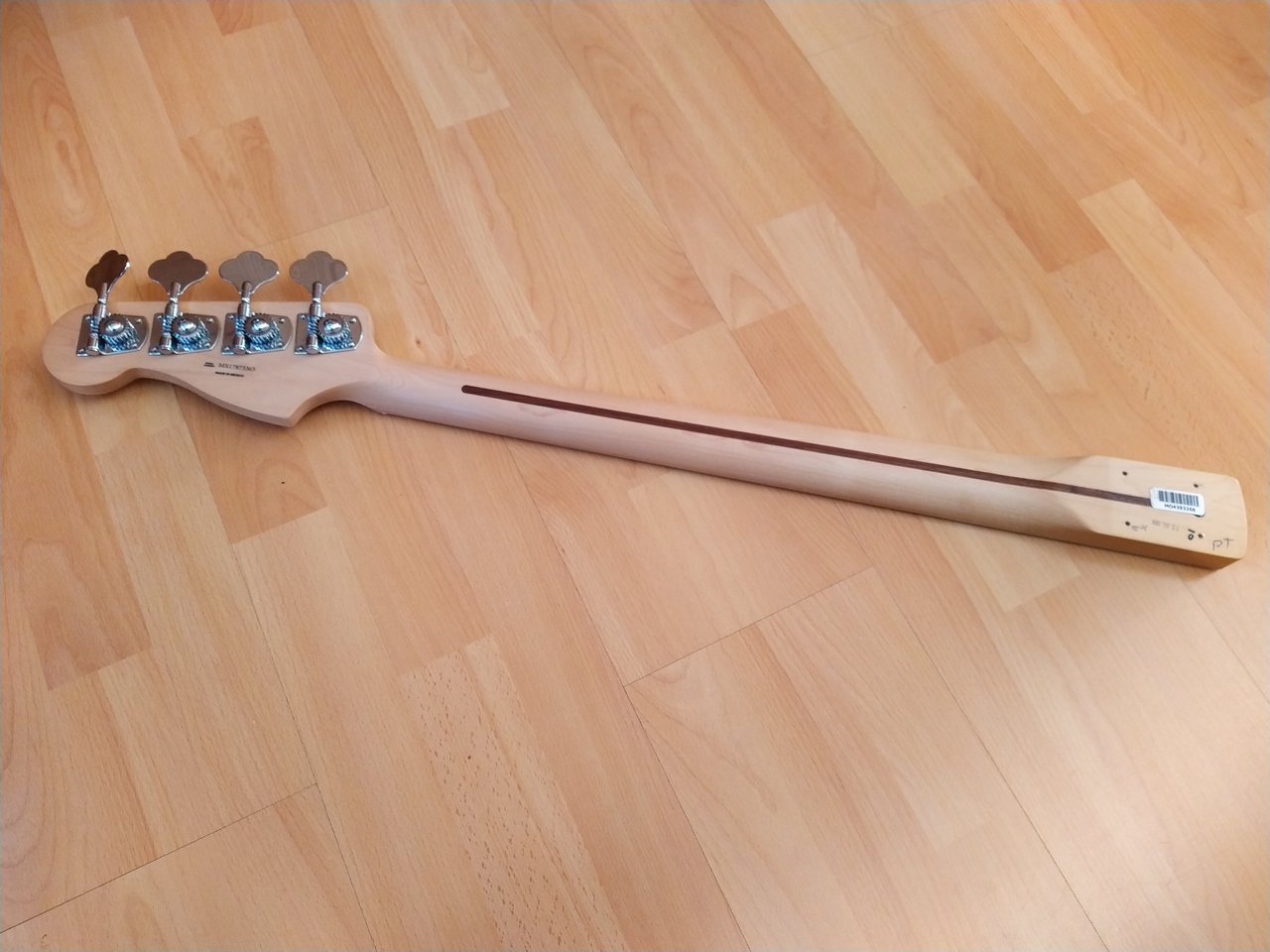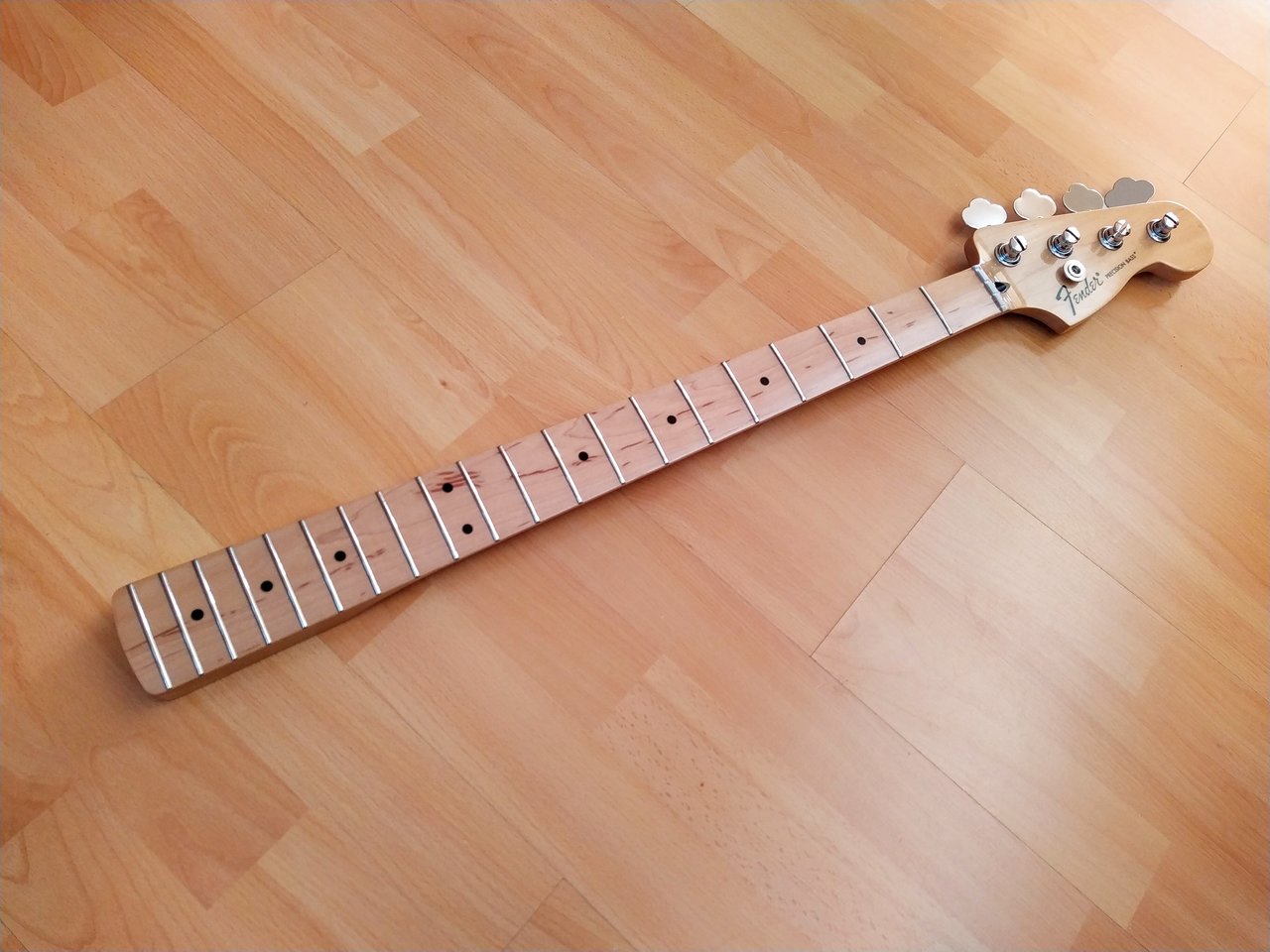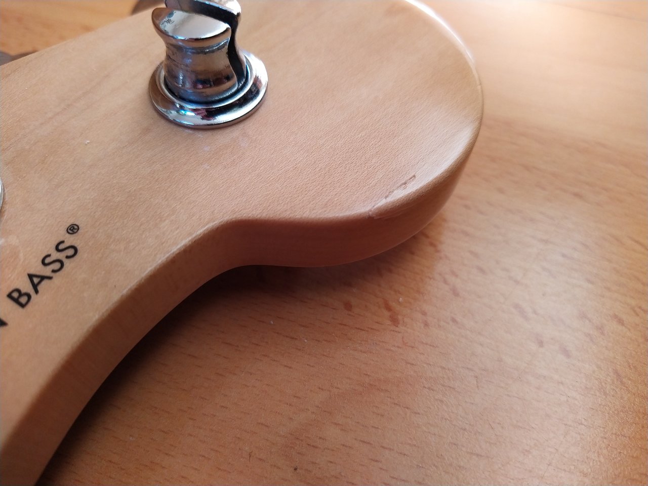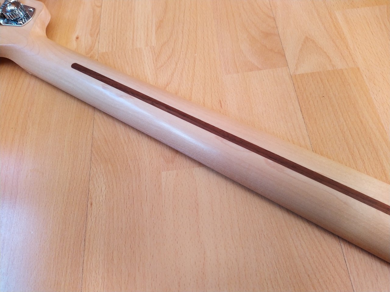Ich denke die Bilder zeigen ganz gut den Zustand des Halses. Bis auf einen kleinen Chip an der Kopfplatte ist er in sehr gutem Zustand. Der Hals stammt von einem Precision Standard in Lake Placid Blue. Zu der Farbe gefällt mir ein Rosewood Neck einfach besser, daher kann der Maple Neck hier weitergehen.