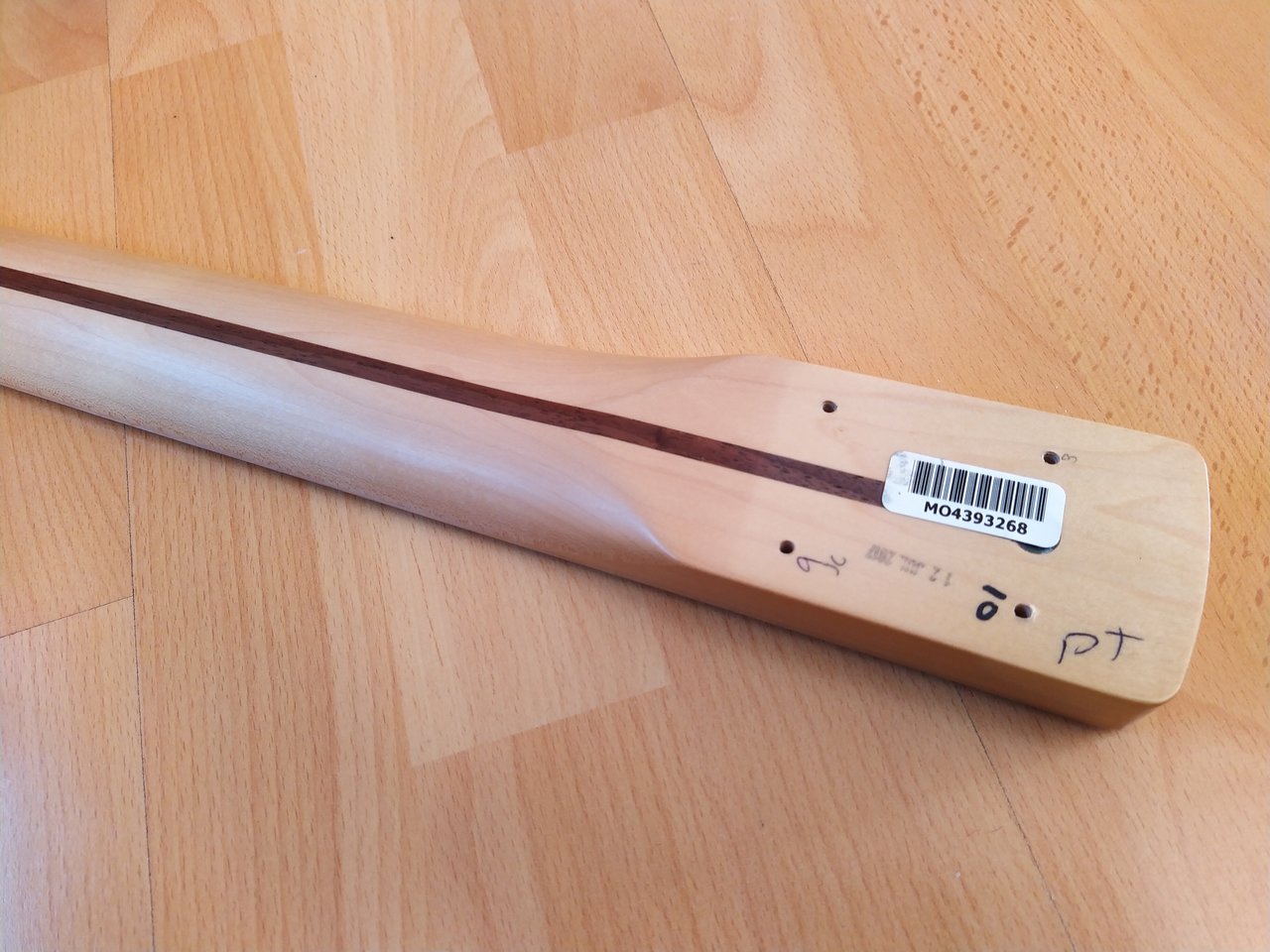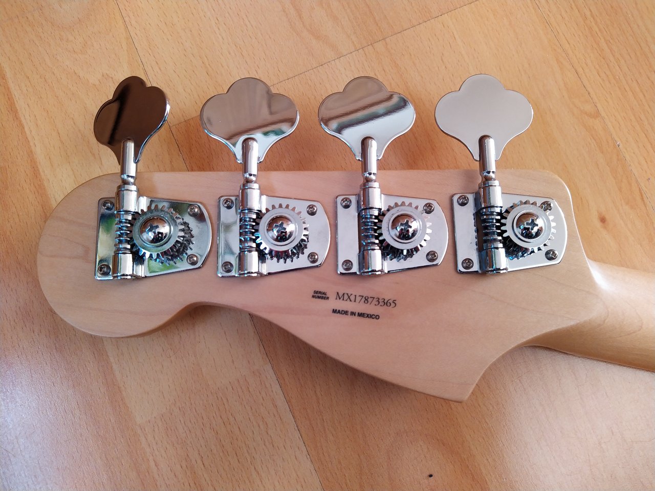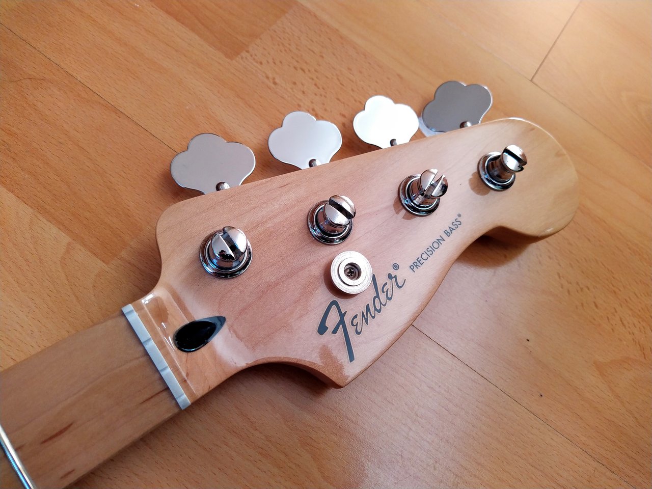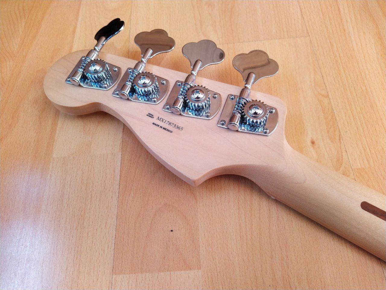 Ich denke die Bilder zeigen ganz gut den Zustand des Halses. Bis auf einen kleinen Chip an der Kopfplatte ist er in sehr gutem Zustand. Der Hals stammt von einem Precision Standard in Lake Placid Blue. Zu der Farbe gefällt mir ein Rosewood Neck einfach besser, daher kann der Maple Neck hier weitergehen.