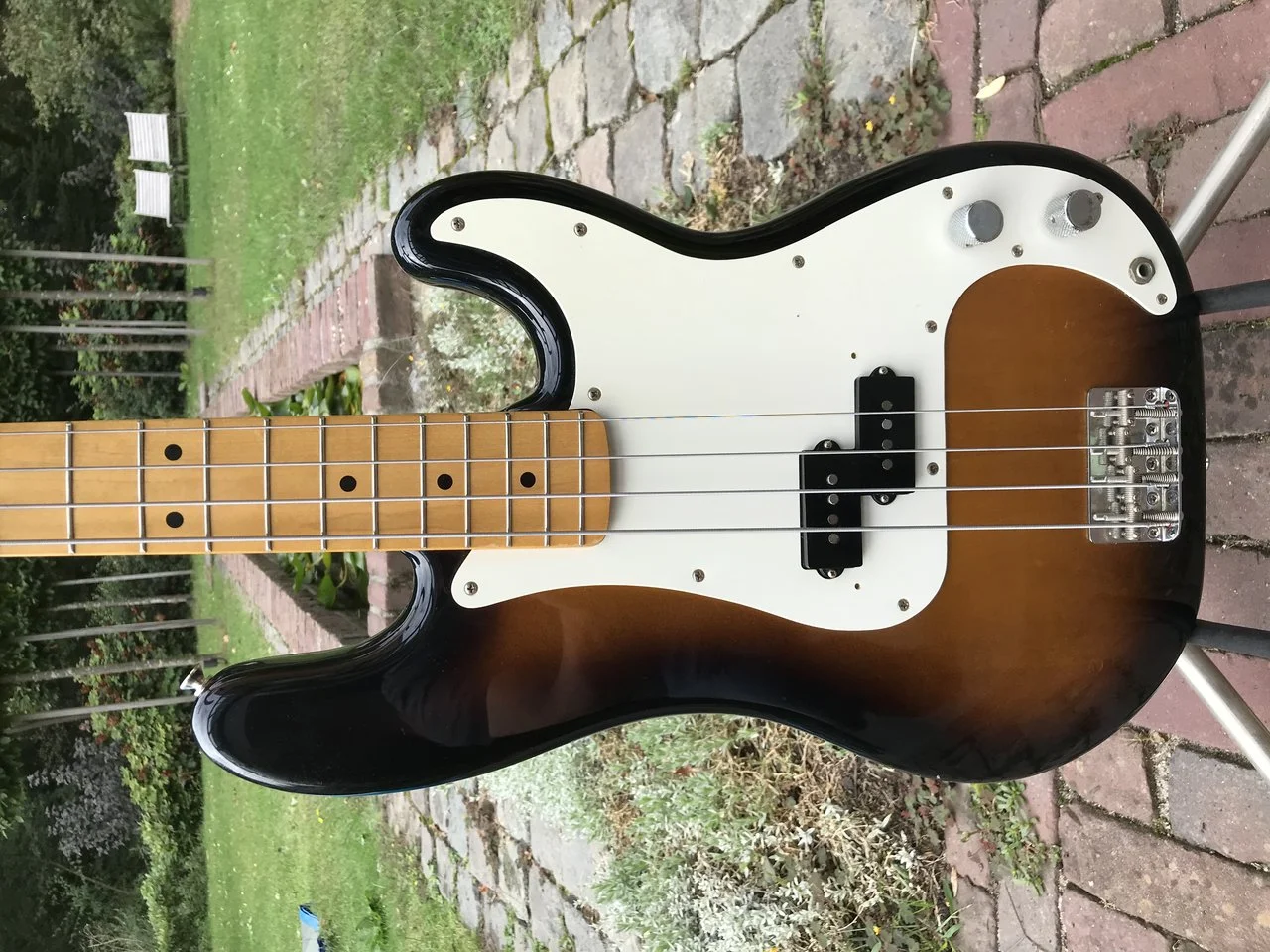 Habe den bass sauber gemacht, bunde poliert, neue saiten drauf, adjustiert. Alles ist 100% orginal und functioniert 100%.