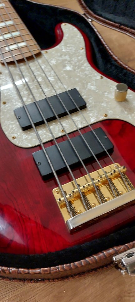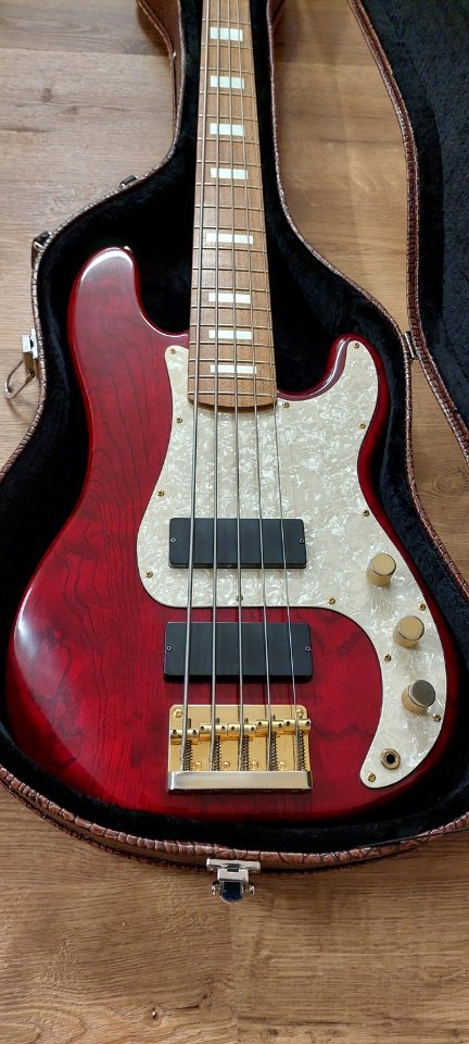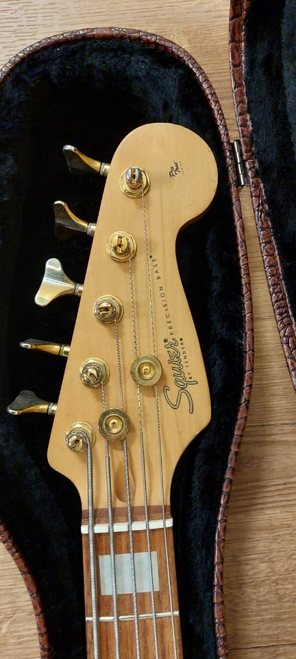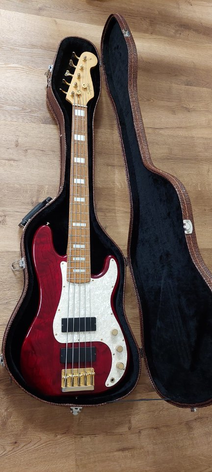 Was Feines für Sammler und Liebhaber: Gebe meinen Fender Squier Pro Tone V ab. Gefertigt 1997 in Korea und im sehr guten Zustand für das Alter. Die "Blockinlays" sind keine echten Inlays, sondern nur aufgeklebt und können rückstandsfrei abgezogen werden. Der Bass hat eine sehr schöne Maserung unter der transparent dunkelroten Lackierung. Dazugebe ich ein neuwertiges Ritter-Gigbag.