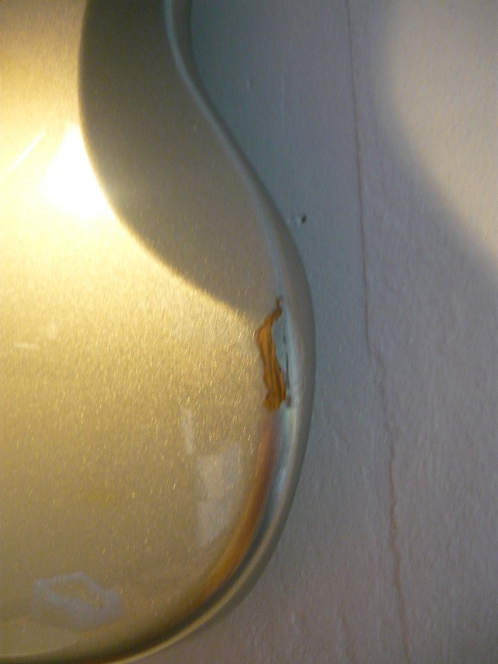 Ist mit Sekunden-Kleber versiegelt und dezent beigeschliffen, damit es nicht weiter bröckelt und keine scharfen Kanten hat.