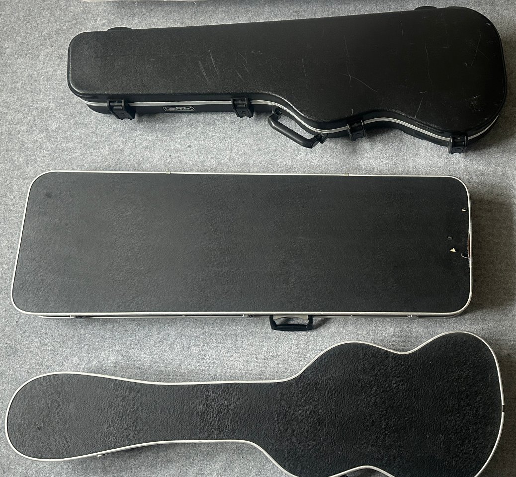 einen Fender Hartschalen-Koffer aus den 90ér Jahren, stark mitgenommen (100,-€) oder