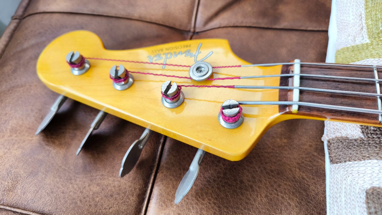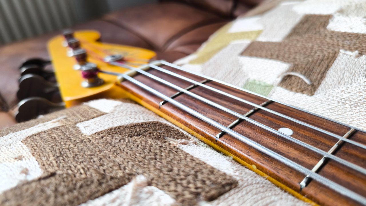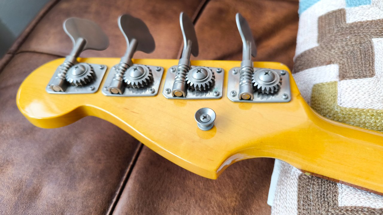 Hat leider zwei kleine Dongs an der Kopfplatte und einen Lackabplatzer am 09. Bund.