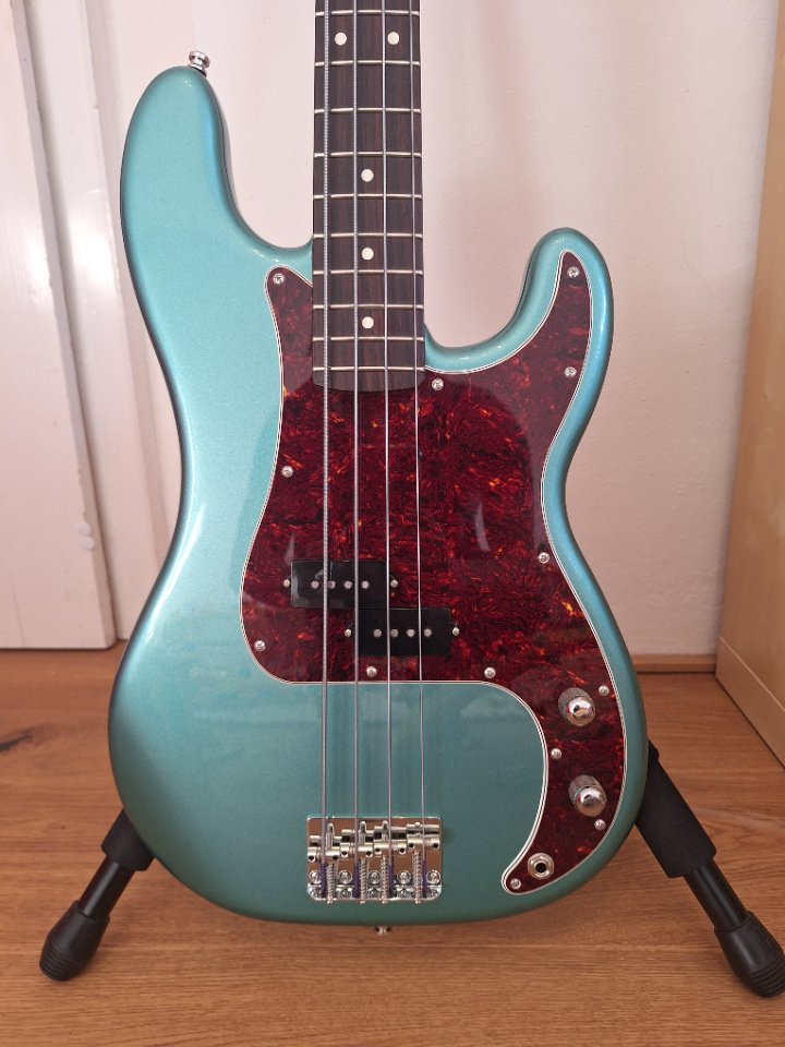 Der Bass lässt sich wunderbar bespielen und stellt einen guten Kompromuss azs Vintage und Modern dar. Die Farbe ist auch richtig cool. Allerdinds nehme ich meinen alten Prezi lieber in die hand und zum rumstehen ist der viel zu schade.