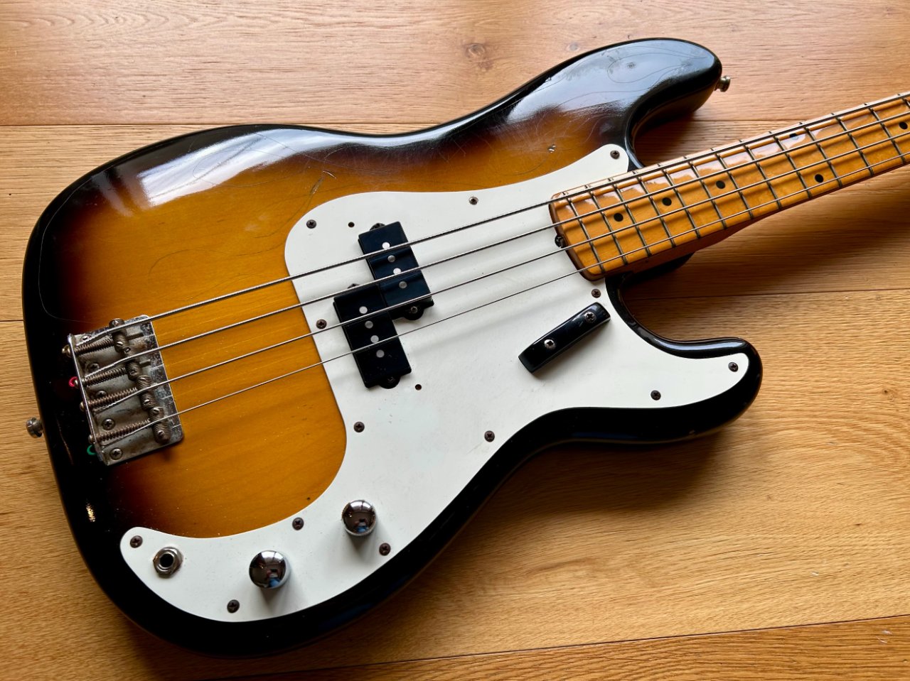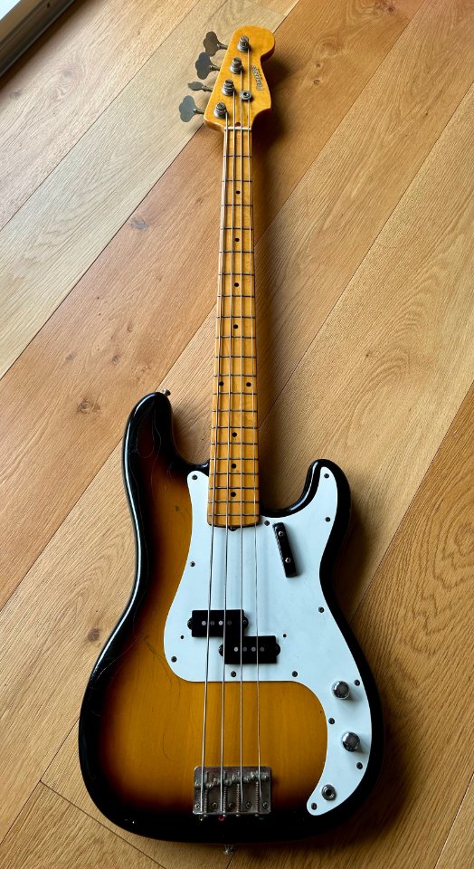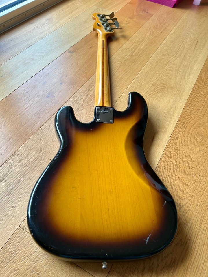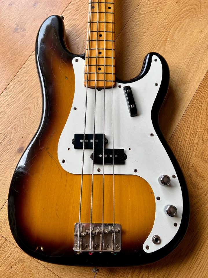 The bass is based on a '57 reissue copy, alder body, maple neck