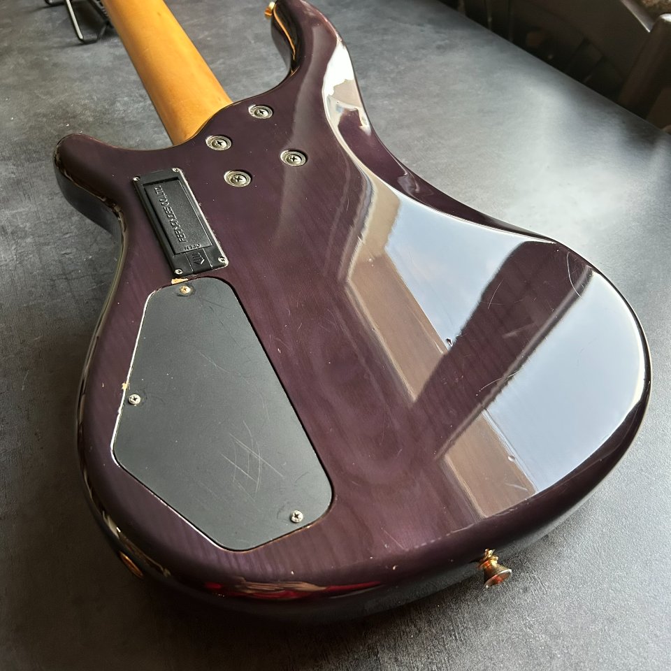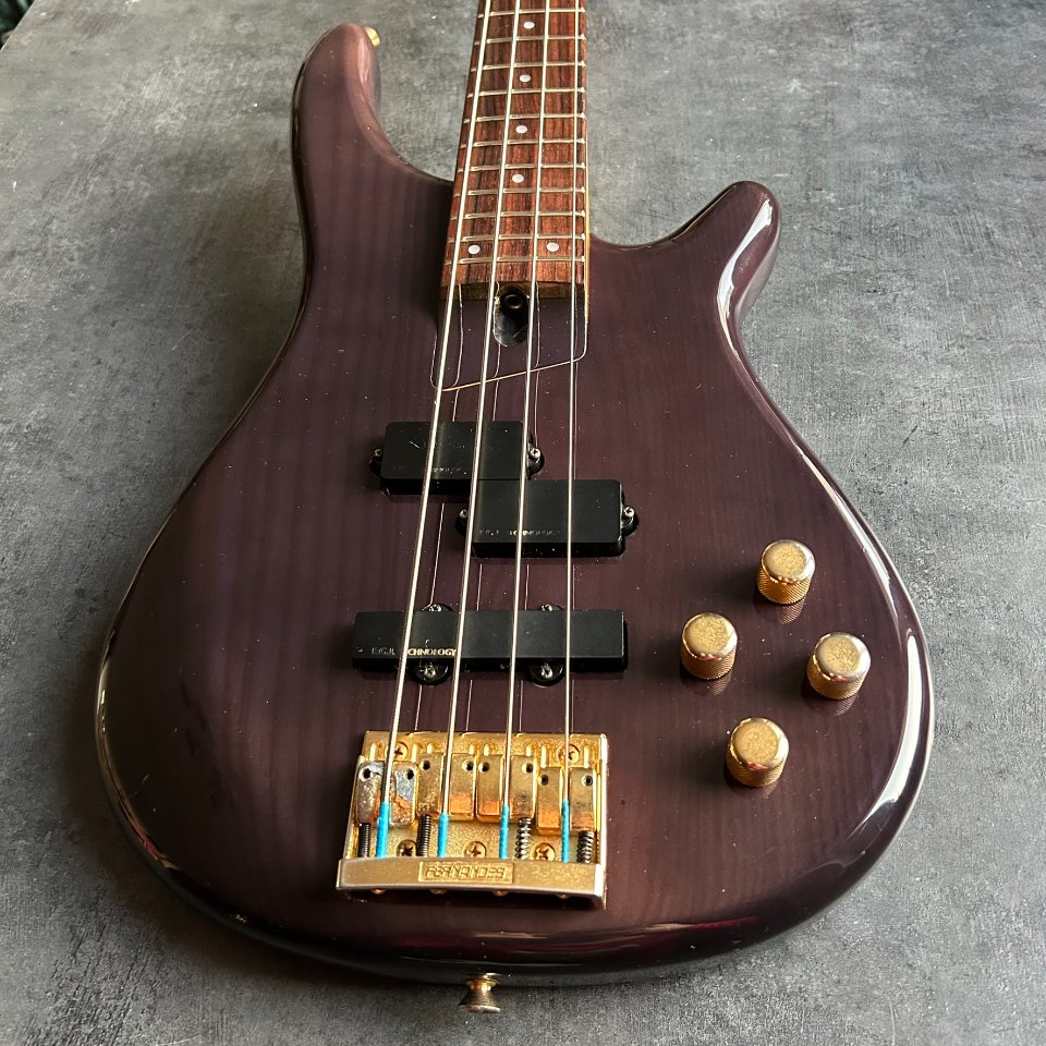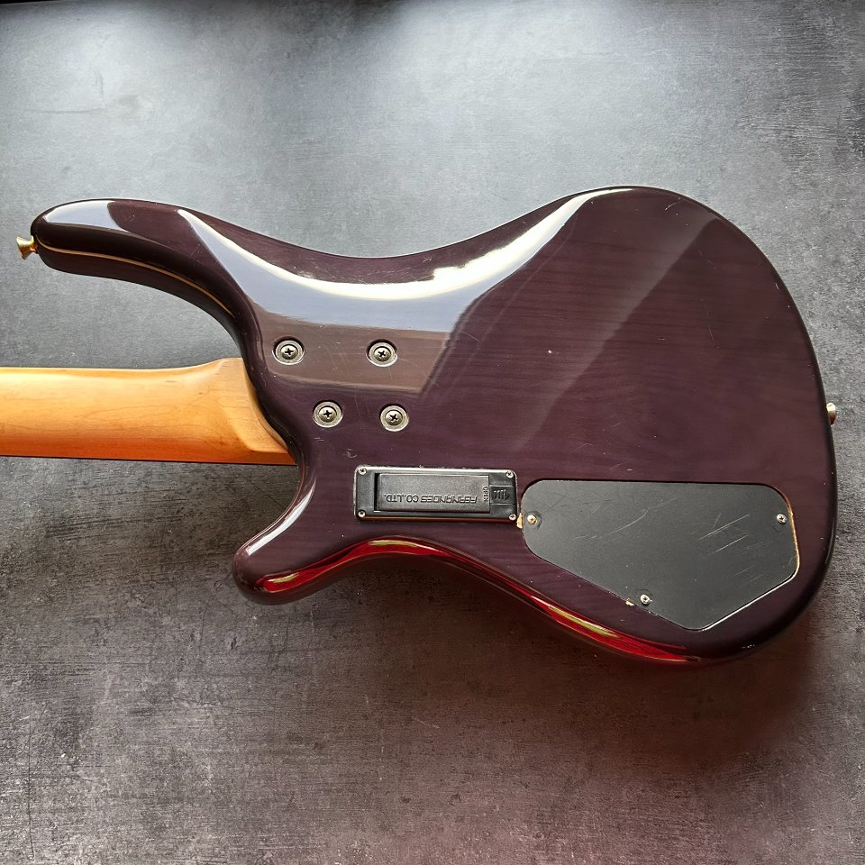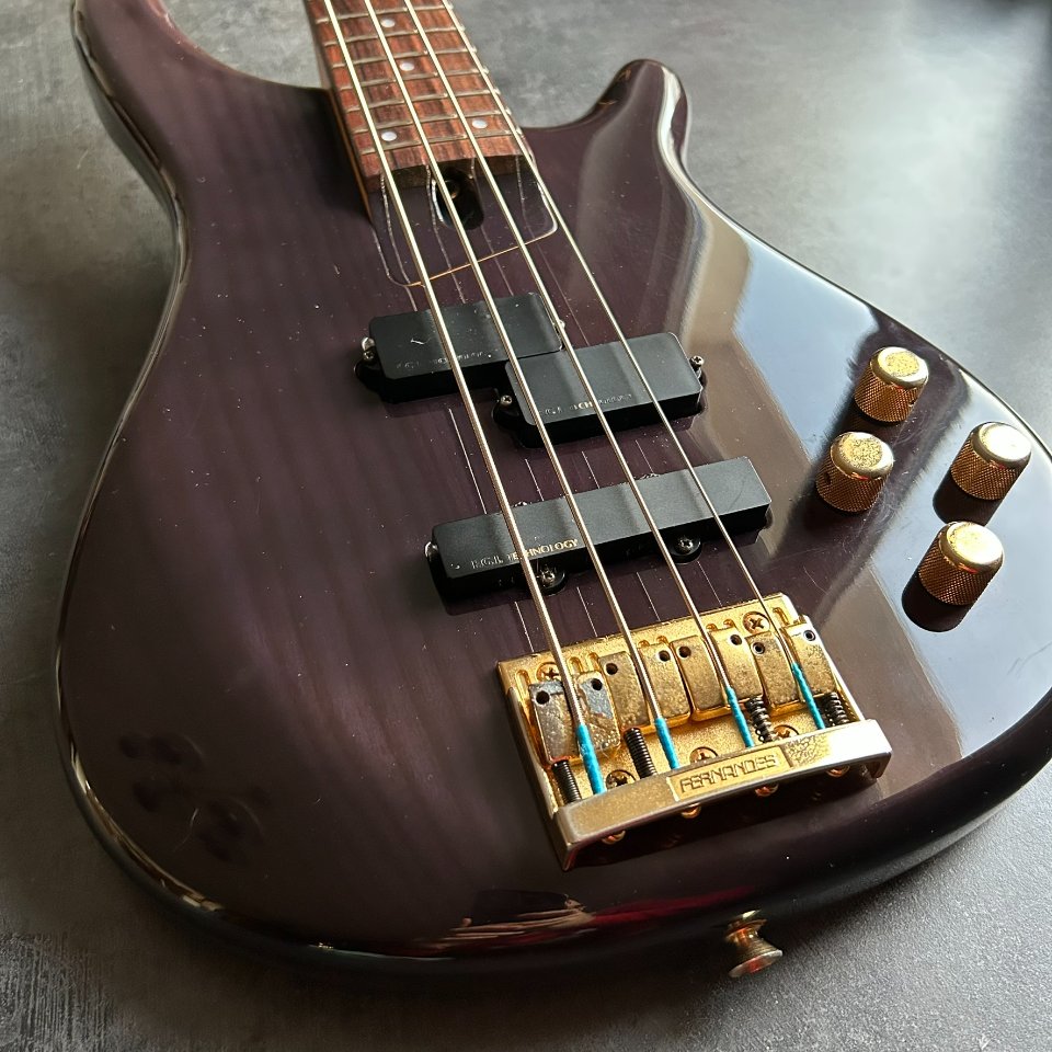 For sale is a rare, active Fernandes FRB-90 bass guitar from the early 1990s. This high-end model, made in Japan, dates back to the heyday of this renowned brand. It has a 34-inch scale and a beautiful translucent purple finish.