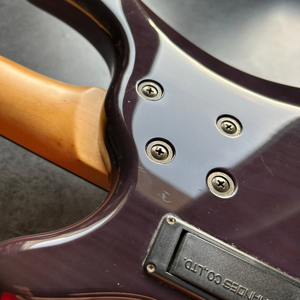 For its approximately 35-year-old age, the guitar is in good condition. There are three minor chips and a few scratches on the body, but the paintwork still looks good. It's worth noting, however, that the high-gloss finish attracts fingerprints and any scuffs, as seen in the photos, but I wanted brutally honest lighting.