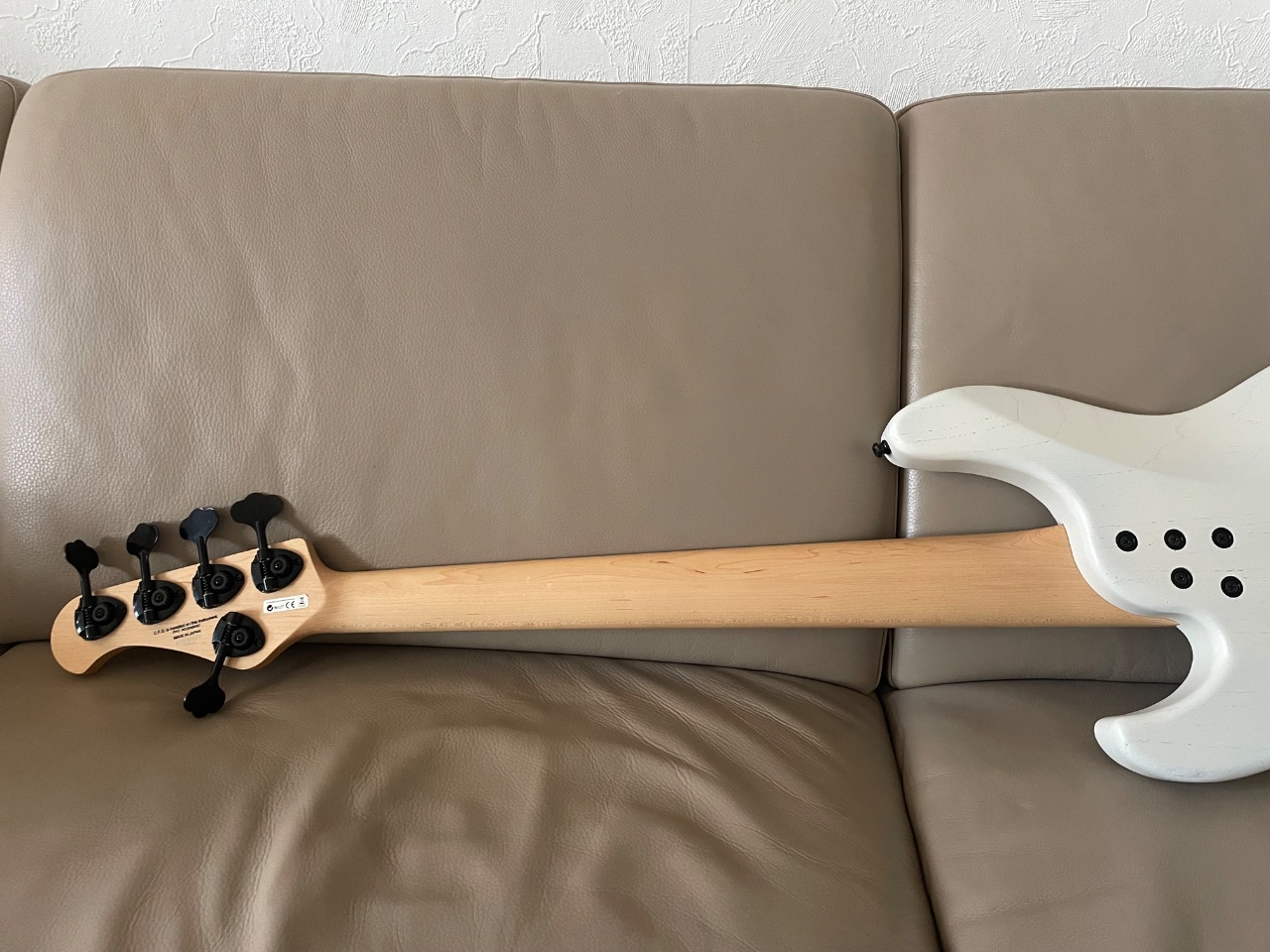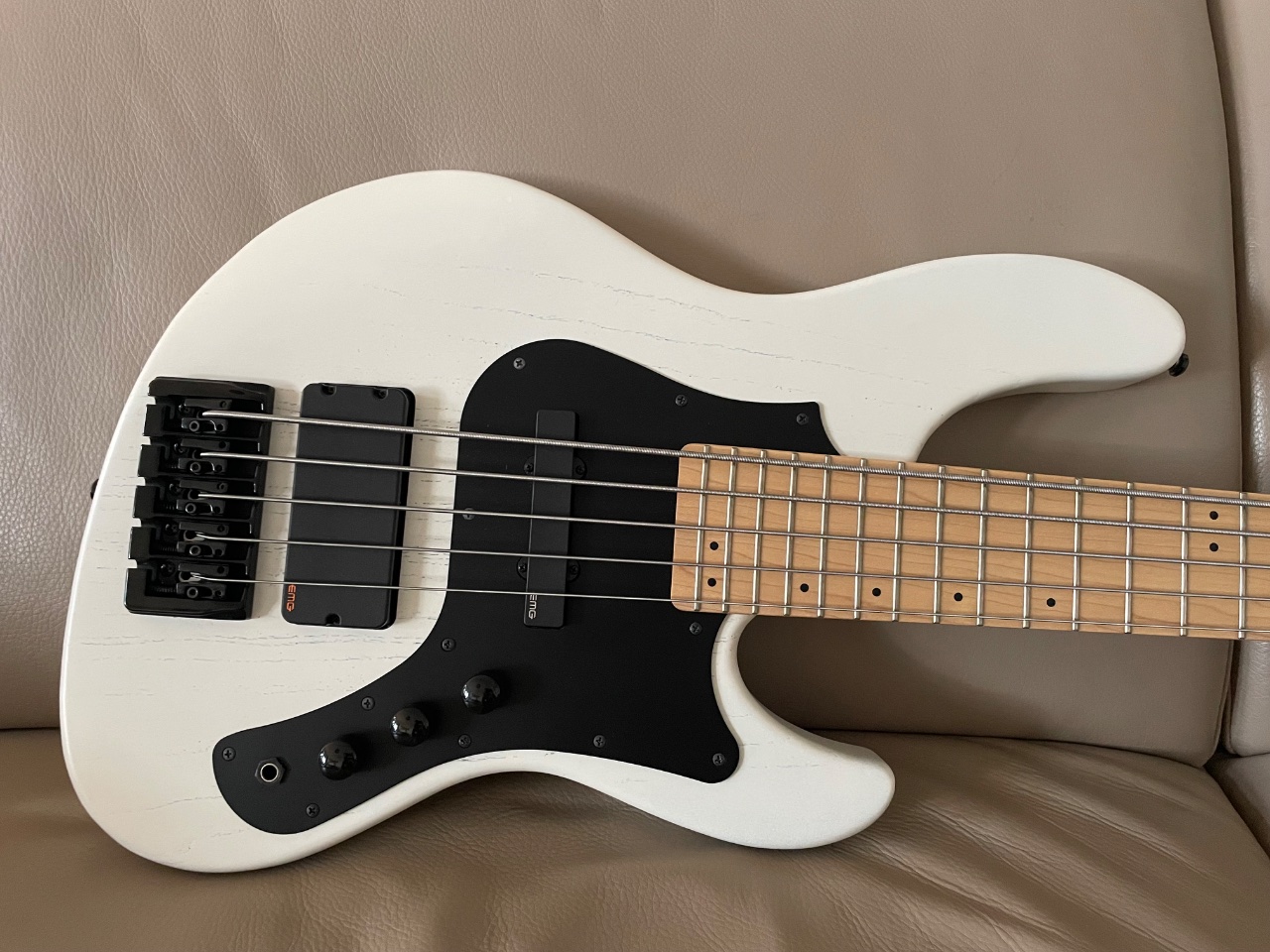 Beste Hözler (Esche und Ahorn, einteilig!), Hardware, EMG Elektronik / Pickups und natürlich die Verarbeitung. Der Humbucker kann über Push Pull auch als Single Coil betrieben werden, so dass man quasi eine JJ Konfiguration hat. Er wiegt angenehme 4,3 kg.
