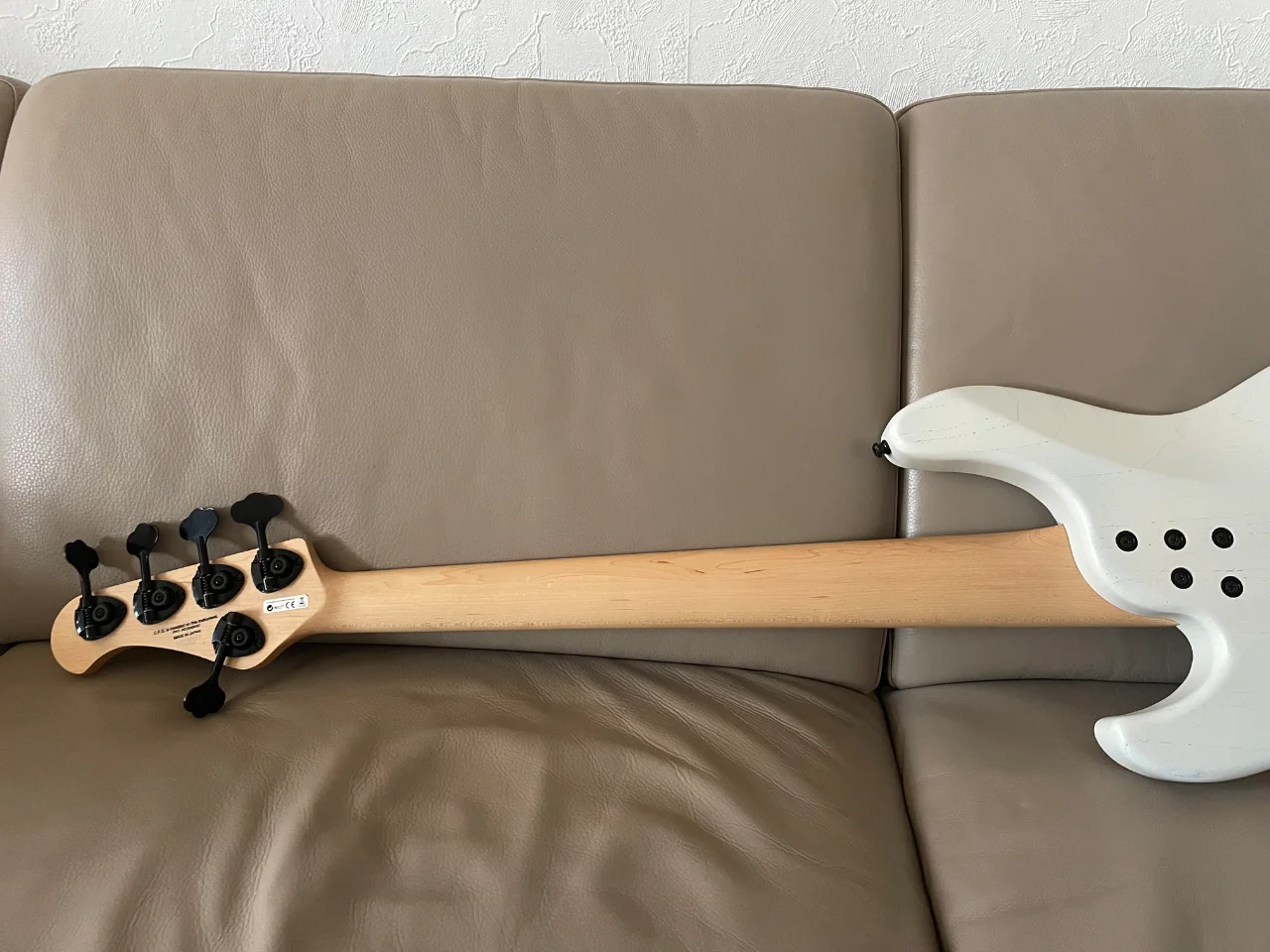 Beste Hözler (Esche und Ahorn), Hardware, EMG Elektronik / Pickups und natürlich die Verarbeitung. Der Humbucker kann über Push Pull auch als Single Coil betrieben werden, so dass man quasi eine JJ Konfiguration hat. Er wiegt angenehme 4,3 kg. Bis auf zwei kleine Macken am Body in einem super Zustand.