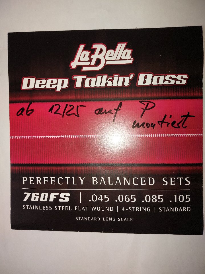 Polierte Flats, die passen ausgezeichnet auf einen Fretless. Waren zwei Tage auf einem Preci montiert, zwei Saiten sind um ca 5 cm gekürzt. Neupreis 49 Euro.