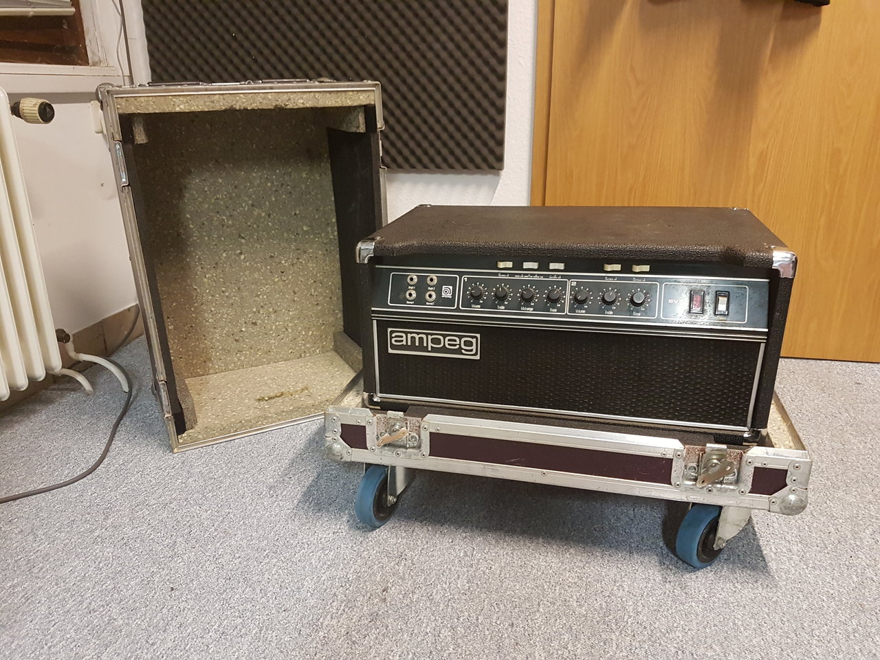 Die Inneneinrichtung ist flexibel, so dass sowohl ein Ampeg SVT (auf dem Bild ist es ein Modell aus der MTI-Ära, der natürlich nicht zum Angebot gehört) oder ein Rack mit 6 HE reinpasst. Das Rack braucht dann natürlich keine Deckel, dann passt es auch mit der Tiefe.