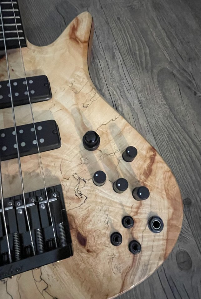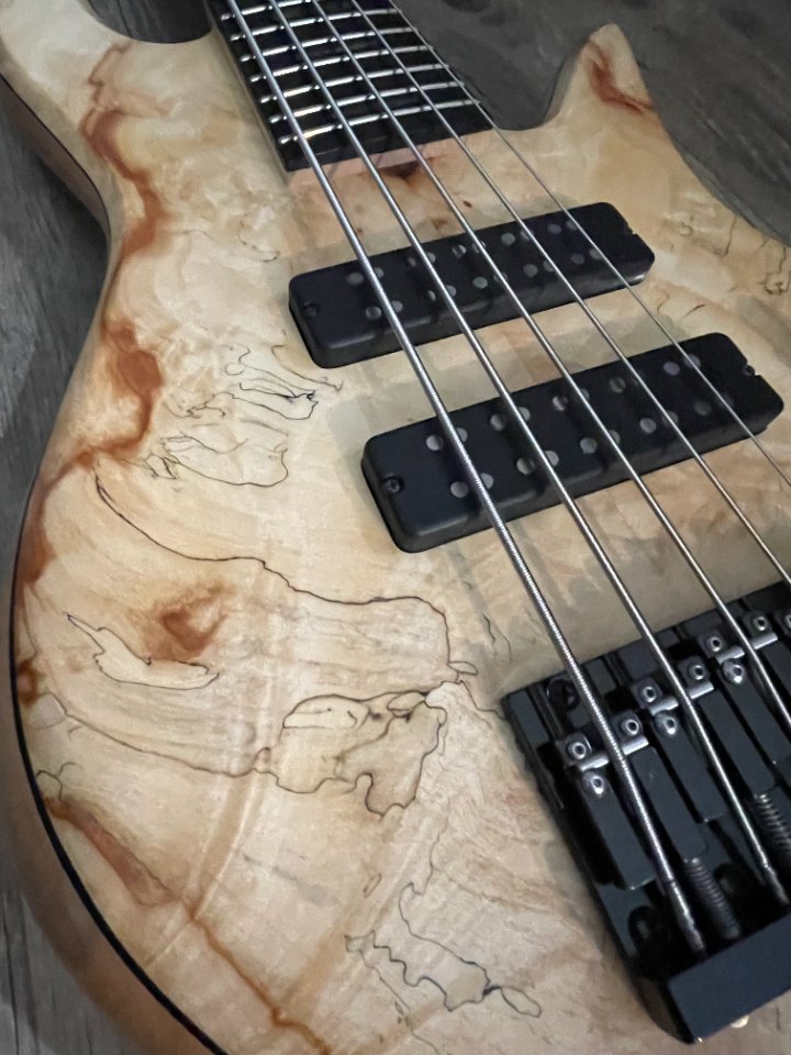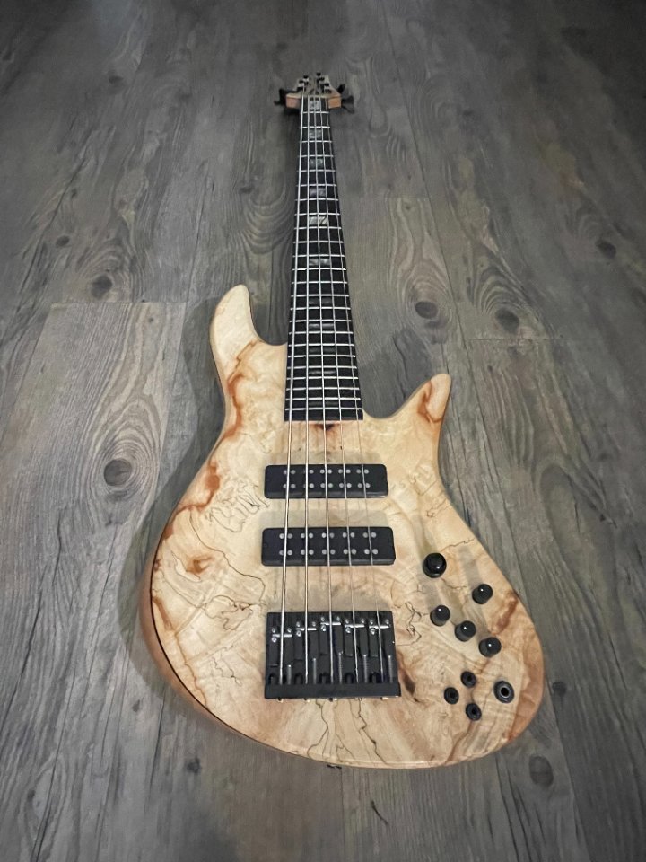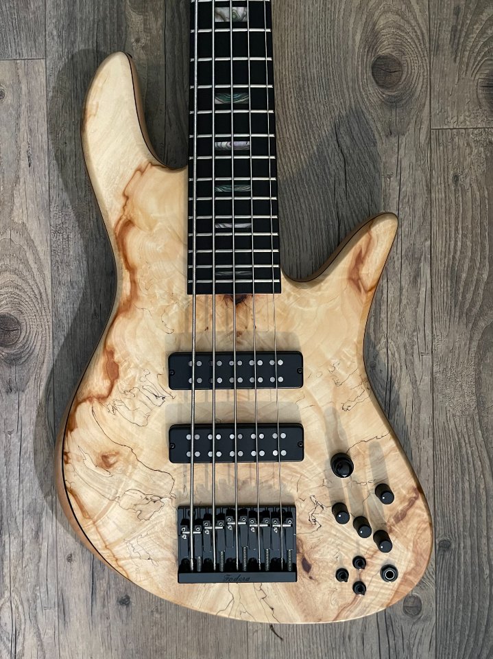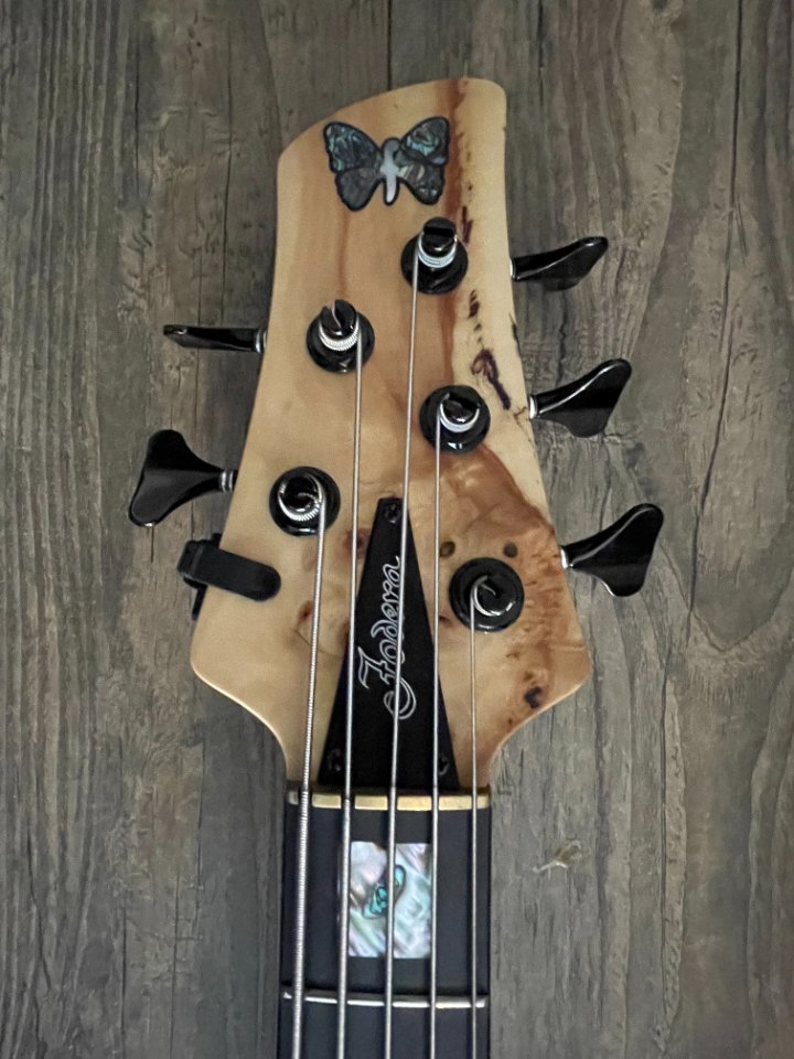 For sale a Fodera Emperor Deluxe with a rare Chestnut Burl Presentation Grade top, build by the master Vinnie Fodera himself.