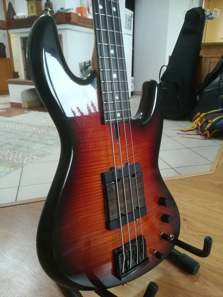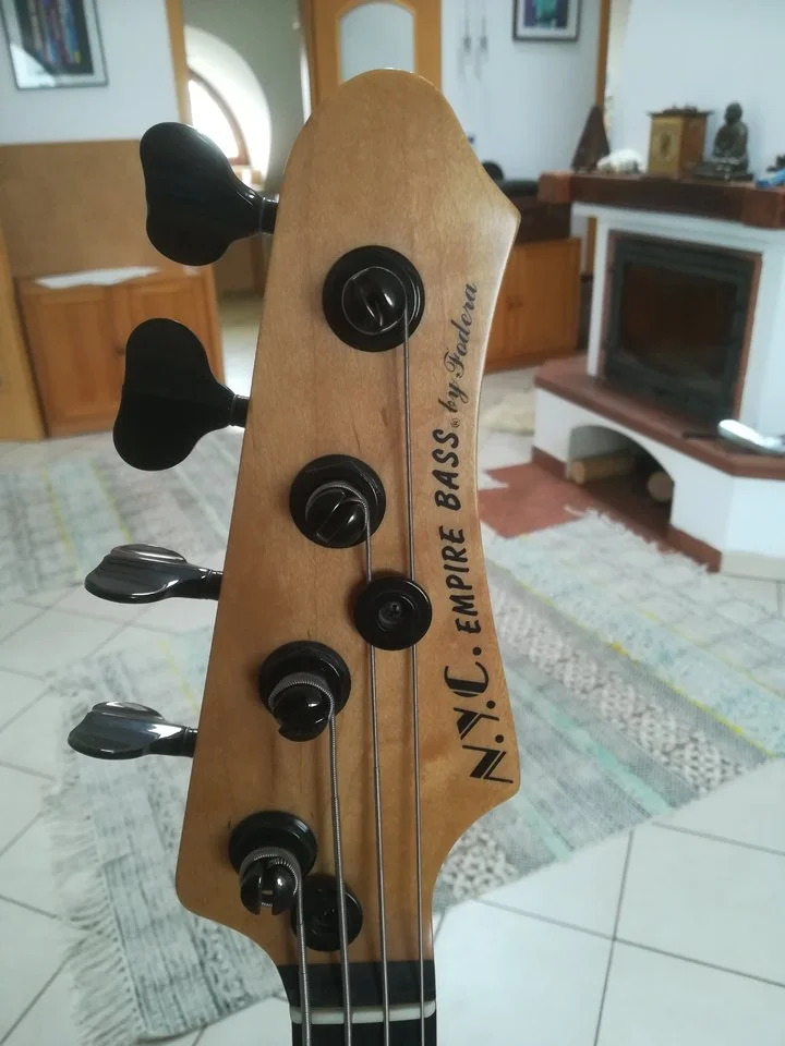 Up for sale my fantastic Fodera NYC, very early model (1997). Plays like hell and is in very good shape too. Currently has Bassculture pickups, but I might put back original Lane Poors (for extra charge). The preamp is Fodera with 2-band EQ. String spacing at bridge is adjustable.Sound sample is HERE