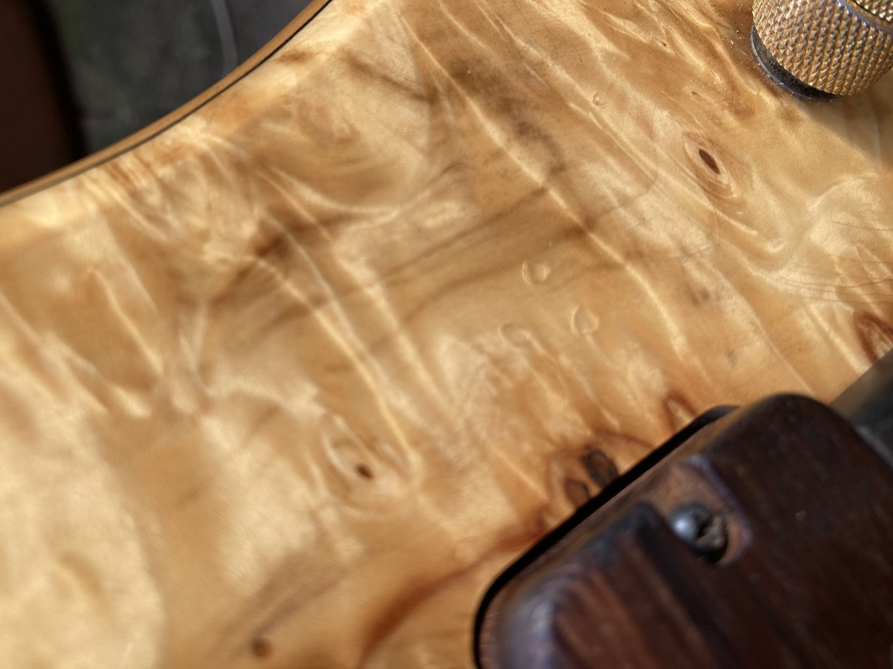 Fodera Monarch Deluxe von 2001 mit Dovetail-Halsverbindung, wunderschöner Chestnut Decke (gibt es so nicht mehr) und allem was Fodera zu bieten hat.