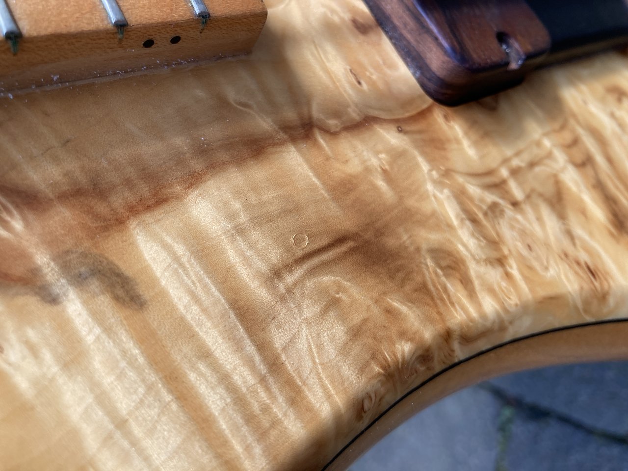 Er hat ein paar Dings und Dongs, der Trebleregler muss mal vor vielen Jahren einen abbekommen haben und ist etwas schief, was aber nicht der Funktion schadet. Der Bass war beim Service und ist tiptop eingestellt. Zusätzlich kommt noch der original Fodera Koffer dazu und das Toolkit, was ich nachträglich bei Thomann bestellt habe.