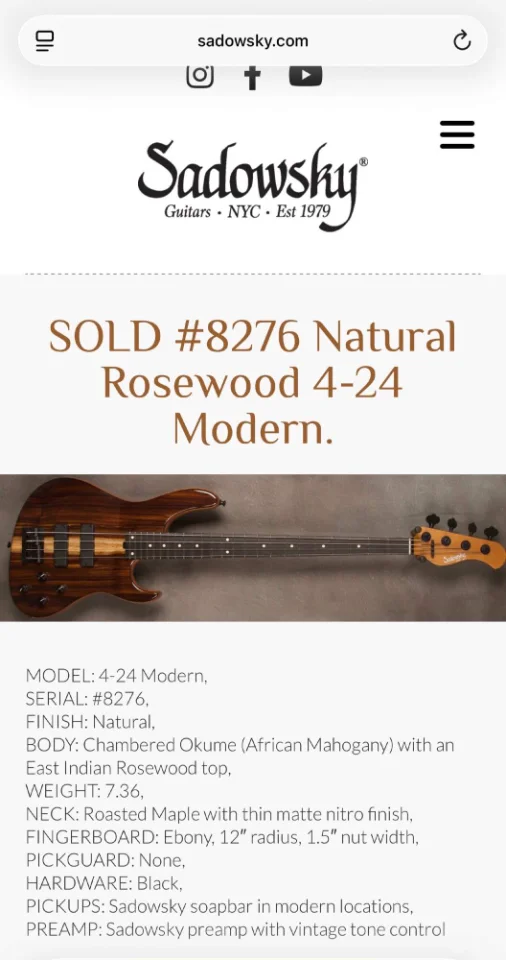 For Sale: Sadowsky NYC 4-24 Modern (Serial #8276) RESERVED