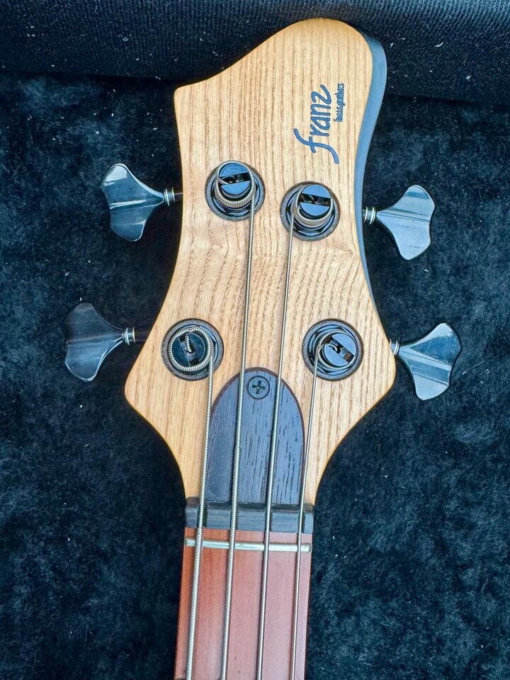 schweren Herzens biete ich hier meinen geliebten FRANZ Bassguitars MERAK 4 an, da ich eigentlich nur noch meine passiven P-Bässe spiele. Als Besonderheit besteht dieser Bass ausschließlich aus heimischen Hölzern und Komponenten. In Abstimmung mit Xaver Tremel habe ich den Bass komplett auf schwarze Hardware umgerüstet, die auch bei ihm gekauft wurde (Kaufbeleg liegt vor). Meiner Meinung nach passt dies viel besser zum optischen Erscheinungsbild des Merak.