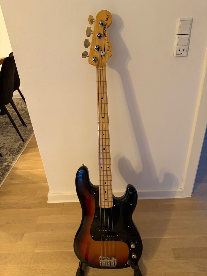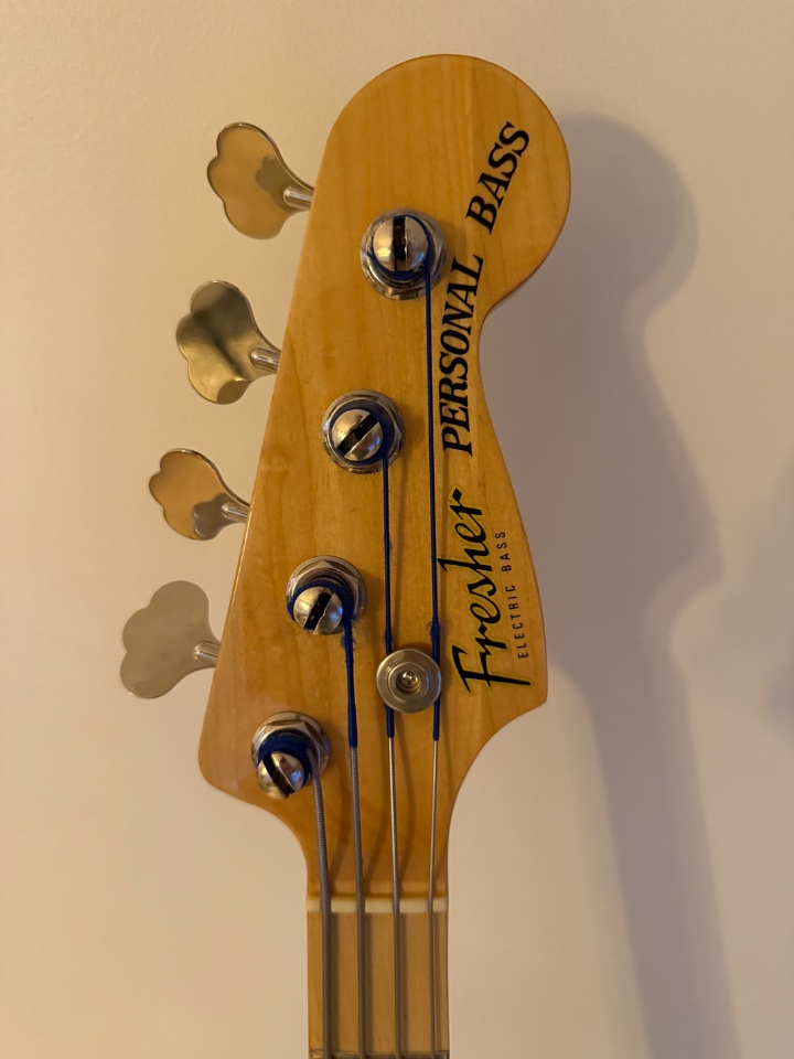 I’m trading my Fresher Personal bass, which is from either 1982 or 1983. It plays flawlessly and feels great in the hands. The bass is in very good condition and weighs around 3.5 kg, so it’s nicely lightweight.