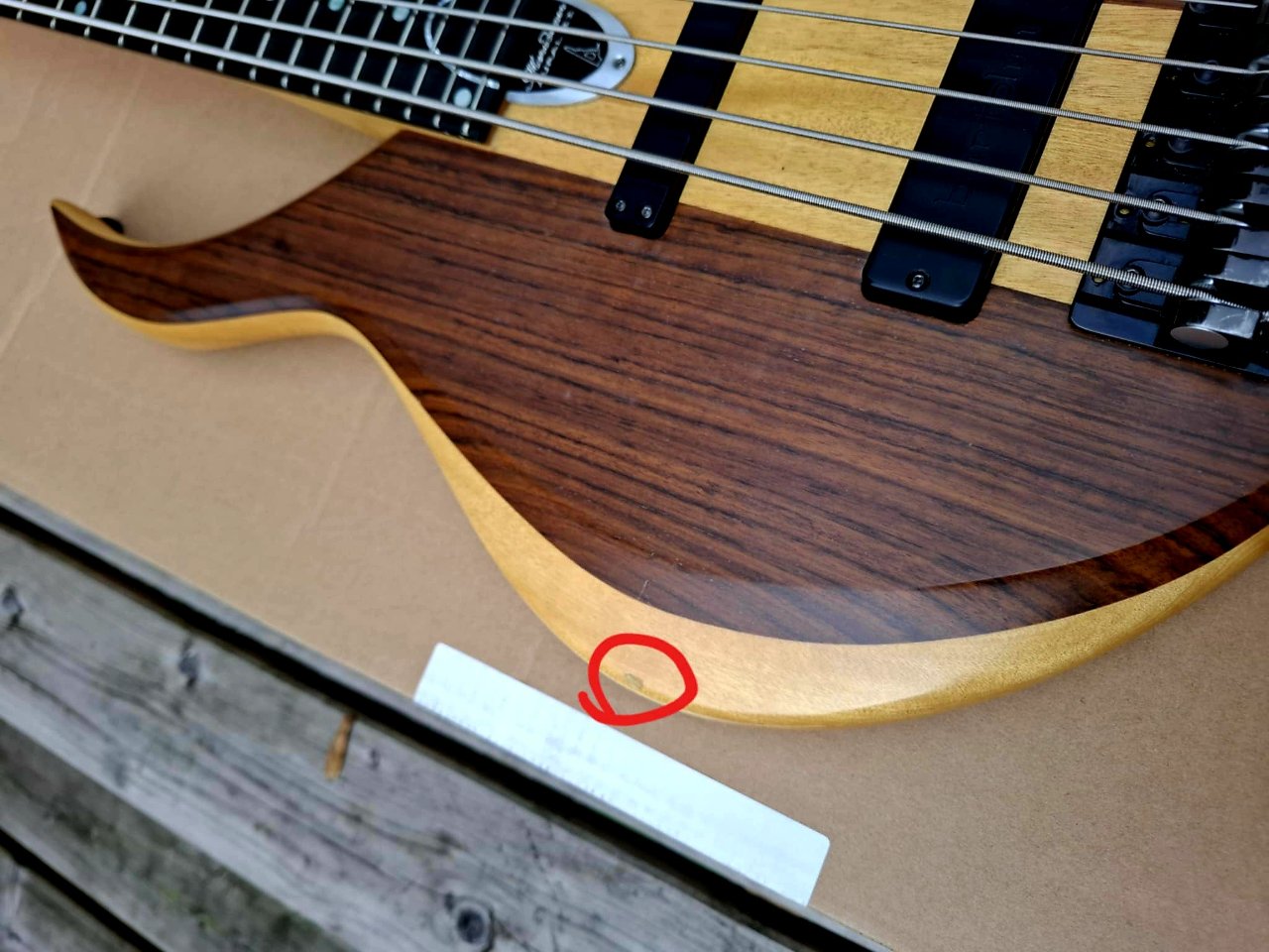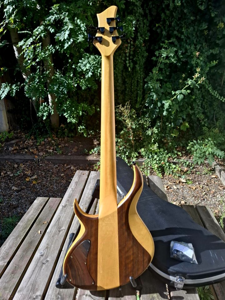Neck: Pau Amarelo with AAAA maple strip Fretboard: Phenolic resin 24 frets 16" radius (This looks, feels and sounds like a thick slab of ebony)