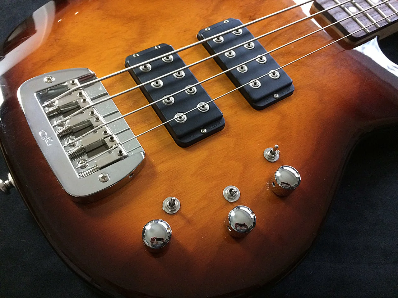 • Schalter: 3x Mini Switch, passiv - aktiv - aktiv+TrebleBoost • Regler: Vol, Bass, Treble
