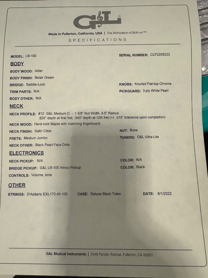 Der originale G&L Pickup liegt bei und wird mit verkauft.